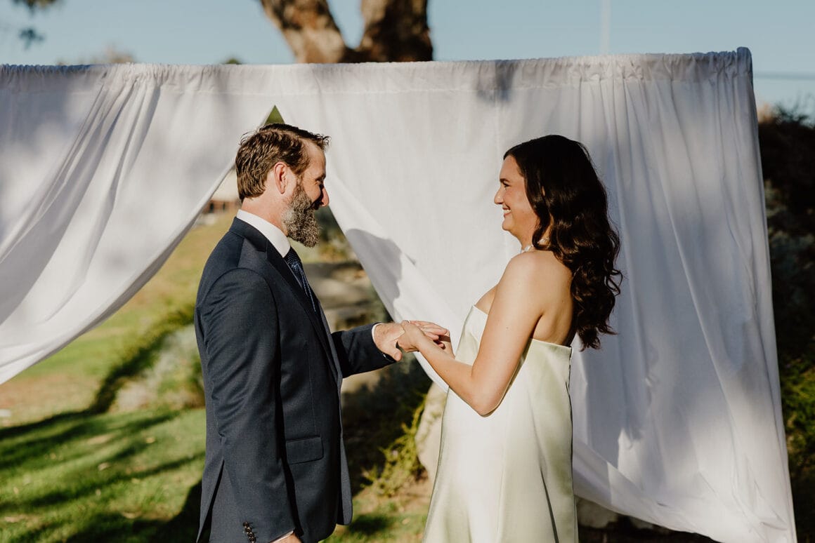 These lovebirds look familiar? You might recall Gen and Lawson as our gorgeous issue 40 cover-couple. Today, we re-visit their nuptials because, honestly, we STILL can’t get enough. This bride (wearing a mini lovingly made by her friend) and groom…