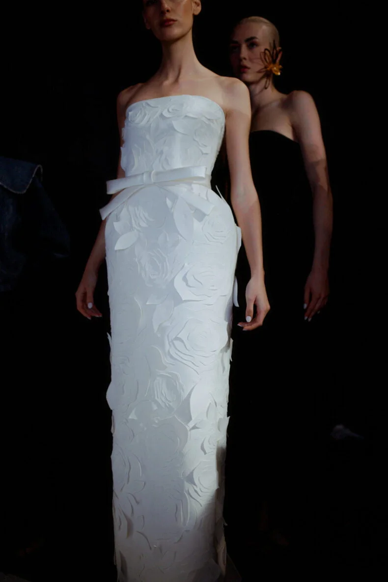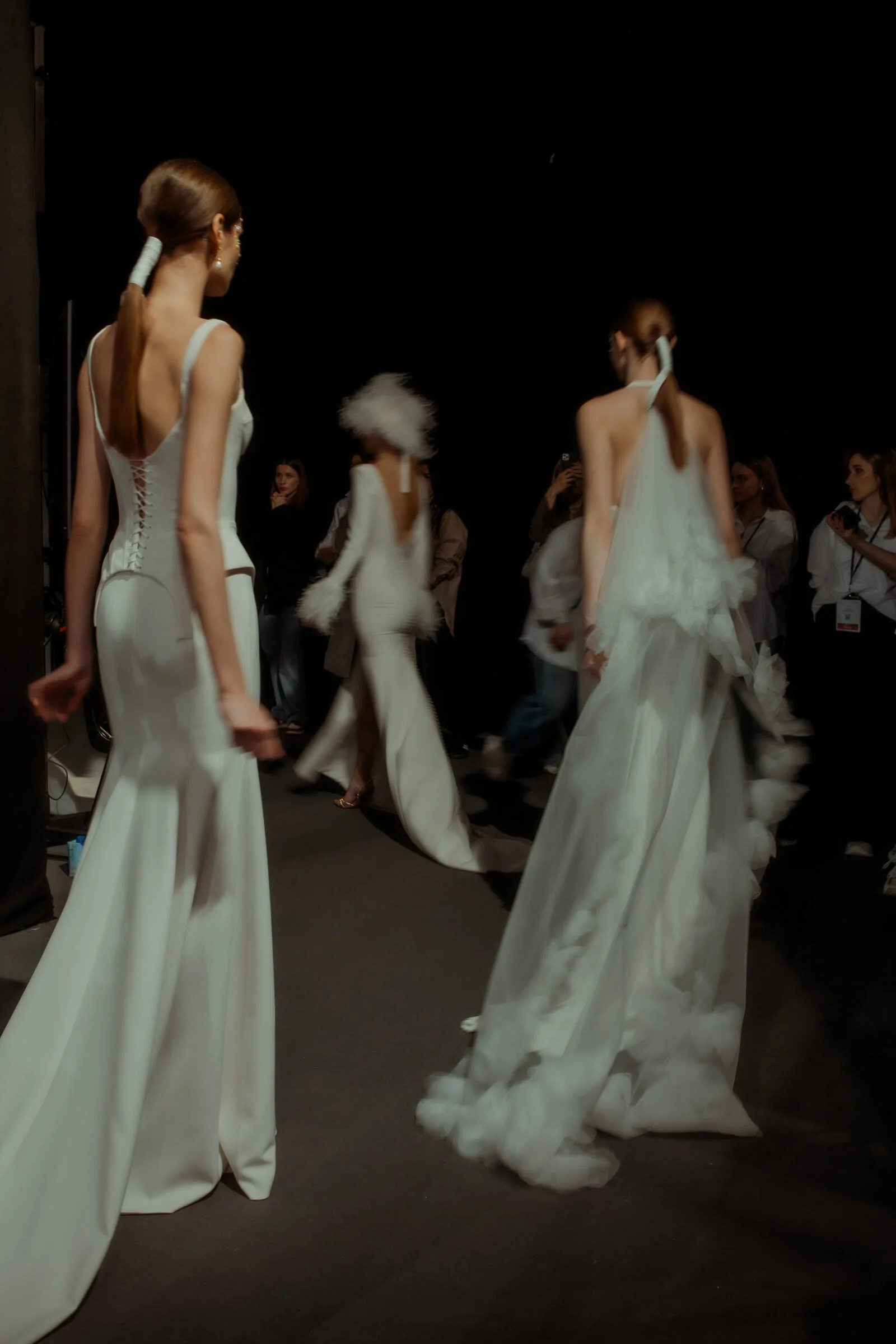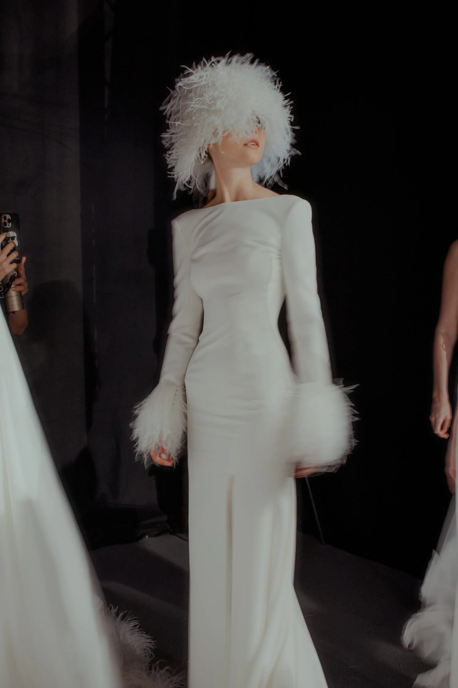 Another huge highlight was cutting-edge Spanish designer Yolancris. The show’s mechanics and drama alone was breathtaking enough, but the collection that followed… Ooft! Picture this: dark runway, classical tune To The Hills blasting, spotlights start flashing and then the most epic suit and statement veil combo strut out. From there, it was hit after hit – sheer gloves, lavish lace, adorned minis and on-trend floral motifs. Each look was uber-romantic yet edgy, weaving modern chic with classic allure.