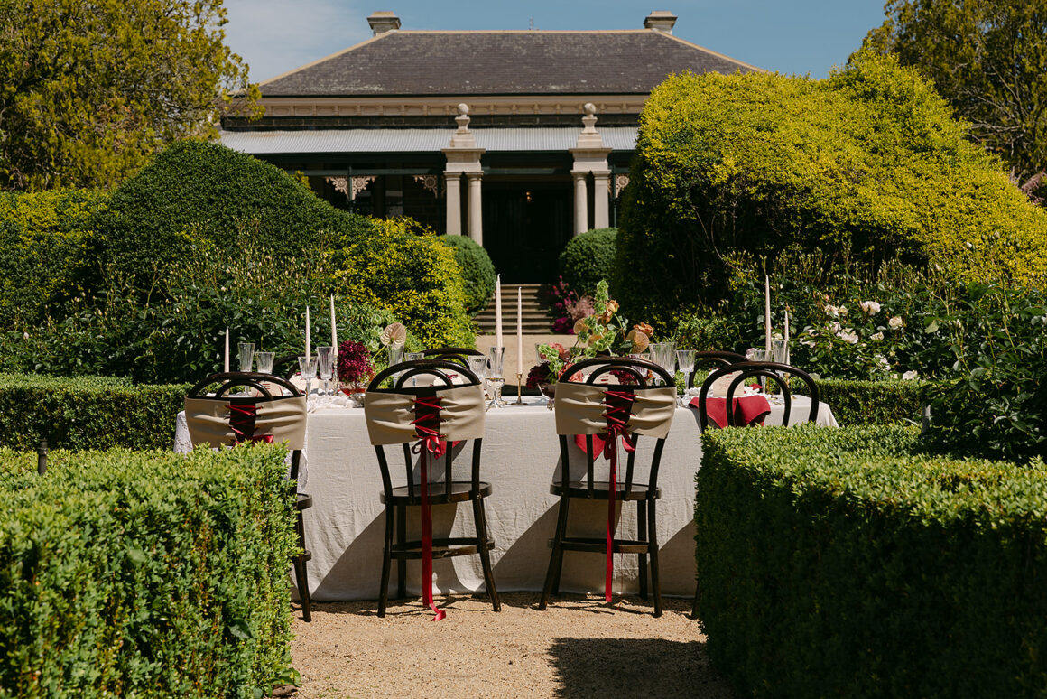 “Chatsworth House works beautifully for anything that leans into natural beauty and understated elegance. Think modern country, refined rustic, garden‑party romance, or minimalist styling that lets the bluestone and landscape shine. Soft, earthy tones and textural florals look incredible here. And if you’re a marquee lover, you’ll be very happy – the spaces for marquees are magic.”