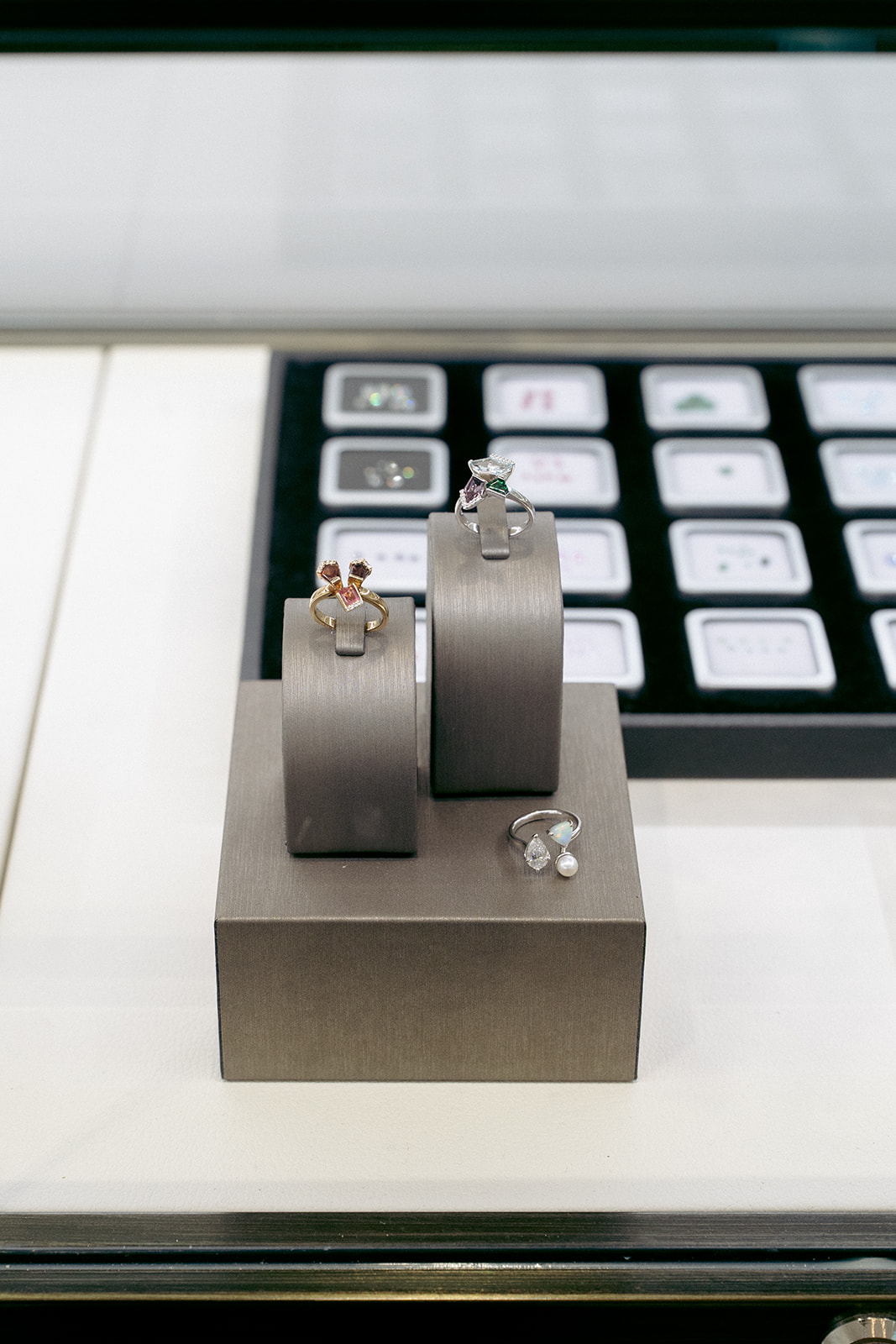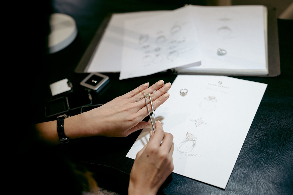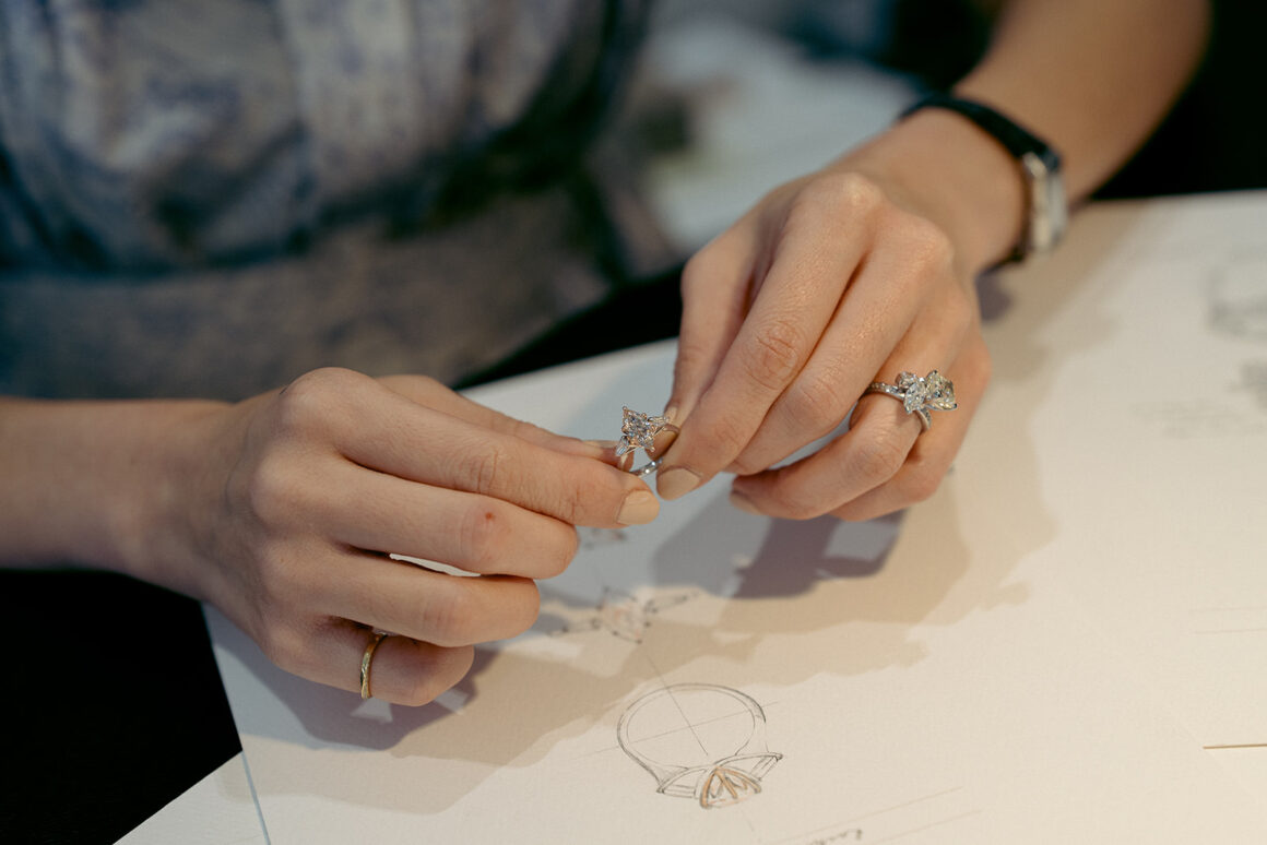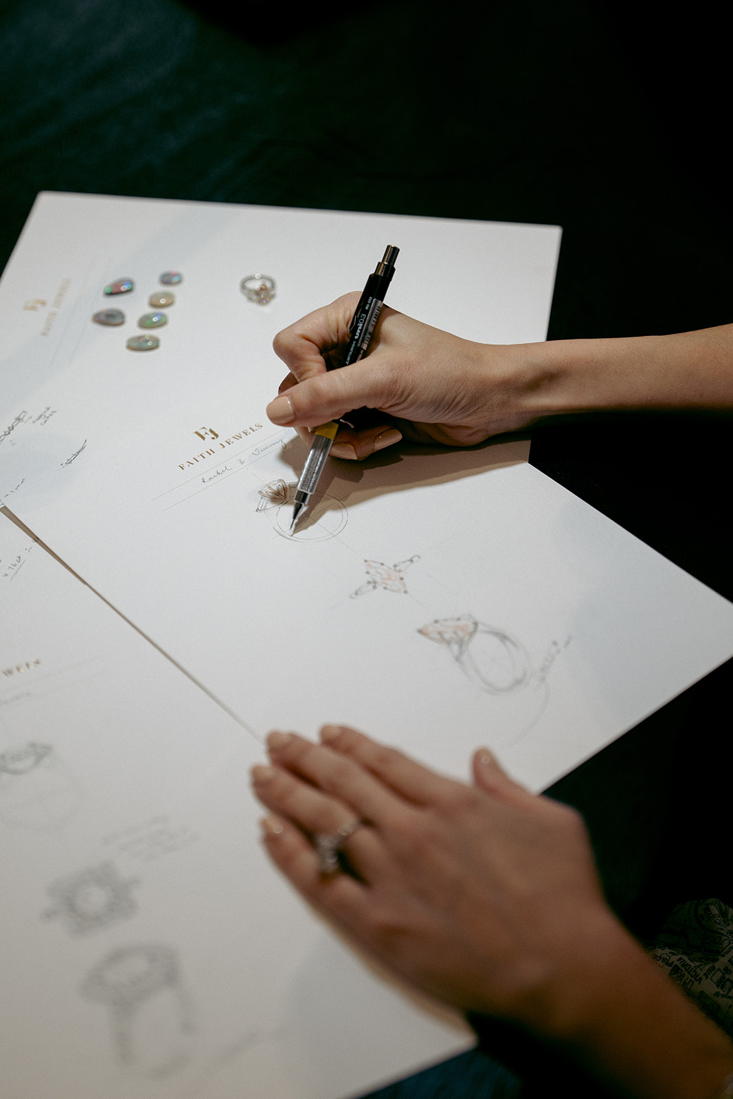 A deeply personal and bespoke experience that begins with listening. Couples are welcomed into an intimate, creative process: from live sketches drawn in front of them, to the selection of rare gemstones, to seeing their vision take form at the jeweller’s bench. They can expect honesty, artistry, and a jewel that becomes a true chapter of their love story.