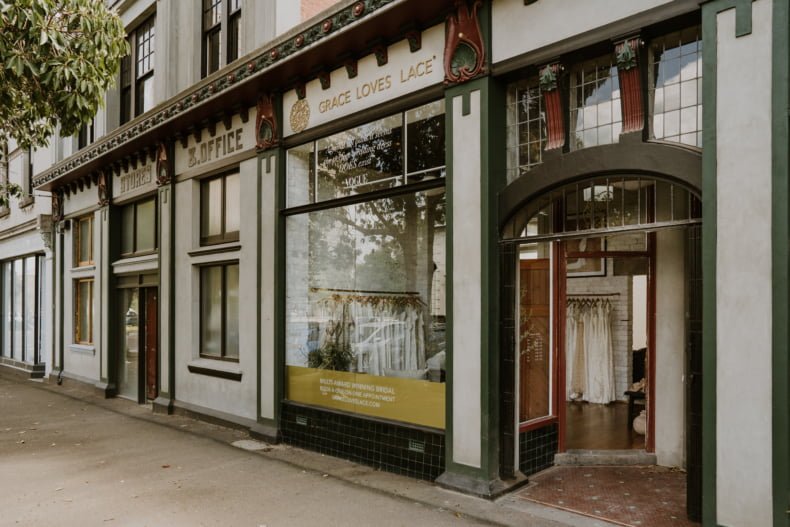What are the three most popular designs on your racks? We really value customer feedback and after almost 13 years of Grace (and as a team of mostly women), we’re confident we have a good grasp on what our brides really want. In 2023, we launched our Jones gown, which was designed based on feedback from our brides looking for more support and with no restriction. This gown is fast becoming a go-to for our brides this year! Brides are also loving Goldie from our Memoirs Of Her collection, which features a high-neck and low-back moment – both big bridal trends in 2023/2024. Finally, for our lace-loving brides, they cannot get enough of Nathalia. Featuring an off-shoulder, mirror-lace design, this gown always brings that ‘wow’ moment our brides are dreaming of!