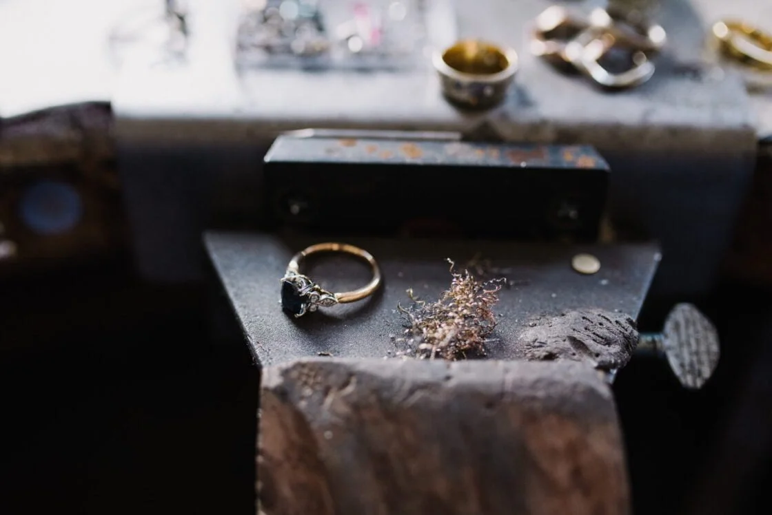 What are the three most popular pieces that you sell the most of? Our Mokume Gane. We bond different coloured precious metals together to create patterned rings that look like wood grain. Australian Sapphires– Teal Blue is like the unicorn colour that gets increasingly difficult to find. Also, our Möbius diamond set band.