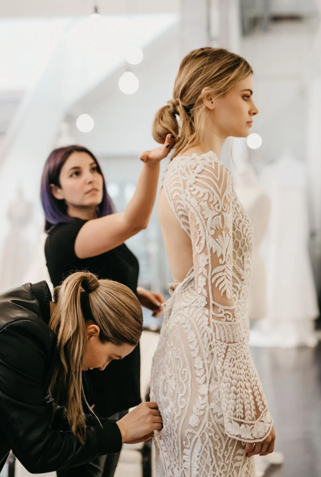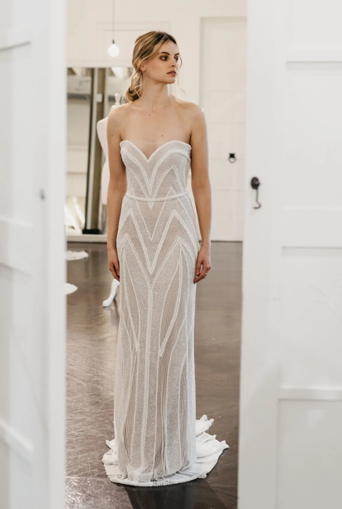 What advice do you have for brides searching for ‘the one’? “Focus on the whole picture. The look, the fit and the silhouette, not just the latest Instagram trend. When trying gowns on, consider who you bring to your appointments. Large entourages can confuse brides with various conflicting opinions. Bringing along those that know your style and whose bridal vision aligns with yours will make for a smoother, more focused and enjoyable shopping experience for everyone.”