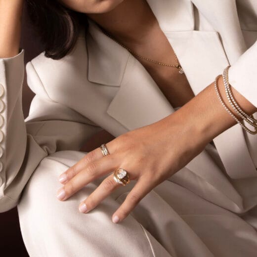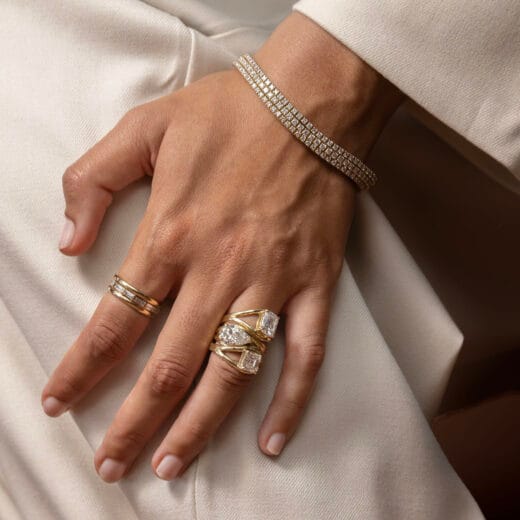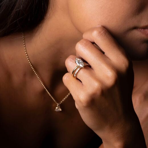 Our pieces becomes a narrative—etched in gold, held by lab-grown gemstones, and carried with you always. The start of a life together, a vow made in love, and the legacy you’ll pass on.