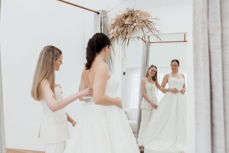 Step into our bridal lounge and discover a world designed entirely around you, whether it’s uncovering silhouettes that make your heart race or adding bespoke touches that make your gown one of a kind. We believe wedding dress shopping should be thoughtful, joy-filled, and entirely yours.