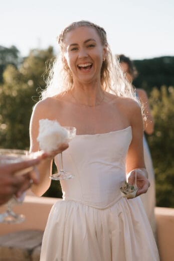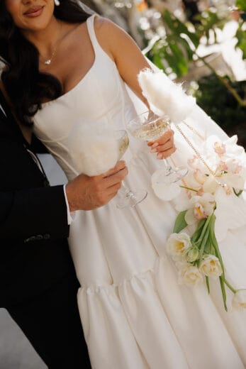 2. **Welcome Bubbles and Floss**: This can be served pre-ceremony and for toasting after the ceremony. This idea creates the happiest guests and sets a celebratory tone for what’s to come. It gives them something to enjoy while waiting for the bride.