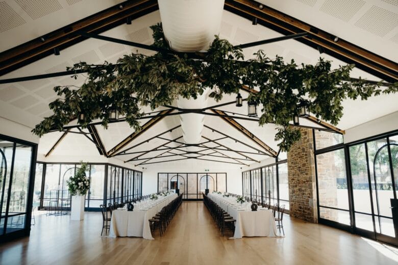 At the heart of the property is the Conservatory – an elegant, French-inspired space with floor-to-ceiling glass doors, expansive views, and capacity for up to 180 seated guests or 350 for cocktail-style celebrations. For open-air moments, the adjacent lawn provides a striking backdrop for ceremonies, long-table feasts, or dancing under the stars.