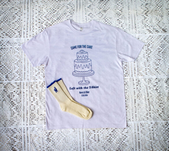 Because we’ve been doing this for so long, we have longstanding suppliers for all the garments and accessories you might want for your personal merch. Need custom knit socks so guests can kick off their heels and hit the dance floor? Easy! Want cosy sweatsuits for the bridal party to recover in the next day? We’ve got you.