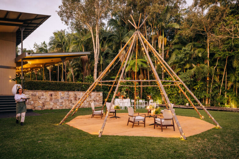 Exchange vows on the Rainforest Verandah or Rainforest Lawn, where the pool shimmers in the distance and the air is filled with the scent of eucalyptus. In summer, cocktails clink as golden light filters through the canopy. In winter, outdoor heaters and plush blankets set the scene for fireside toasts and moonlit dancing.