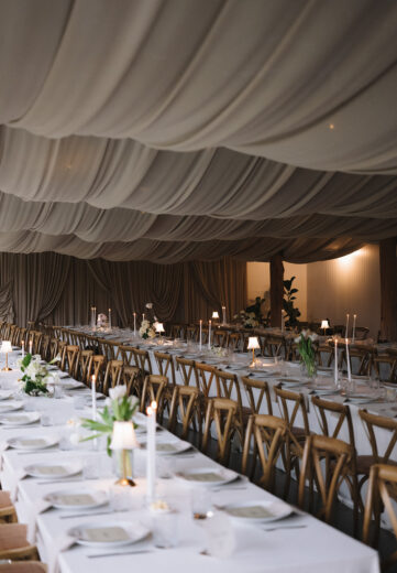 Your celebration includes hire of our elegant venue The Hereford, and onsite accommodation for a three-day, two-night experience. This allows you to experience a true destination celebration – complete with an optional welcome dinner, your dream wedding day, and a relaxed recovery brunch. Our beautiful light filled space Melaleuca is an optional add-on venue available for hire for wet-weather ceremonies, welcome dinners and onsite yoga.