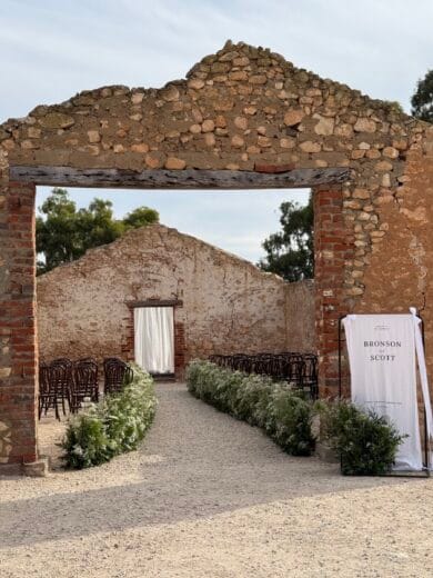 The iconic open-air Chapel and the picturesque Melrose’s Garden are intimate and completely unique spaces for your vows. The lush Stable Lawns hosts delicious pre-reception cocktails, canapés and lawn games, and the Angas Lawns is the perfect space for your reception celebrations, whether under the stars or with a marquee. The adjoining Stable Bar and Lounge is a relaxing space for serving drinks, casual mingling, a photo booth and more! We’ve got before and after the big day covered with accommodation for up to 18 guests, including the historic homestead (est. 1864), bridal suite, and quaint guest cottages (and if you need more, ask us about glamping tents!).