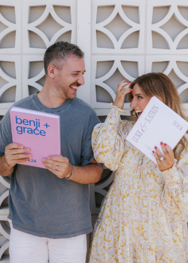 We’re Jem and Shane; the Hinge success story turned husband-and-wife duo behind The Guestbook Collective. One surprise wedding and one “why are all guestbooks so… boring?” moment later, we started creating the kind of wedding guestbooks couples were searching for but couldn’t find.