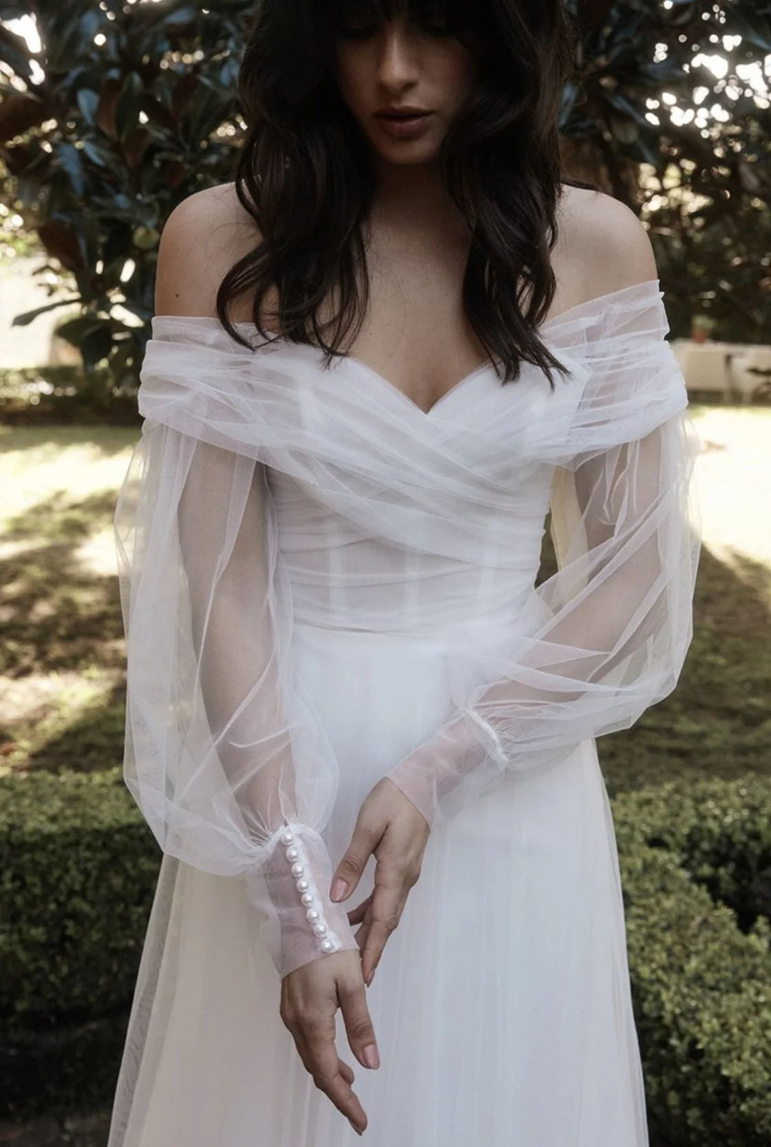 We’ve been quite liberal with our interpretation of the word ‘sleeves’. Not everyone loves a Grace Kelly tight sleeve from the shoulder to the wrist… a sleeve could mean detachable (ala the Oui The Label, Hera Couture and Karen Willis Holmes creations below) or it could mean short and sweet (hello Ella Moda Bridal Couture, above) or some light coverage (check out the amazing Anna Campbell Bridal number right at the end) Whatever your sleeve style, there is something below for every bride no matter her height, size or style.