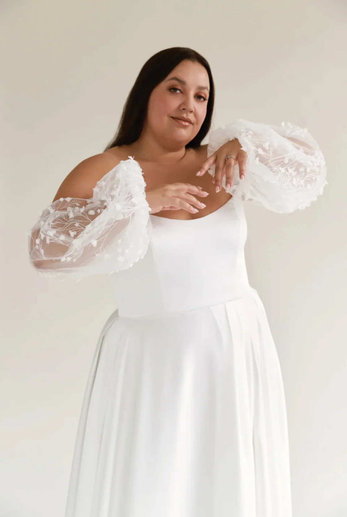 Oui The Label, Viola gown, $3350, worn with detachable clover sleeves, $440. Shop online at Maison Oui