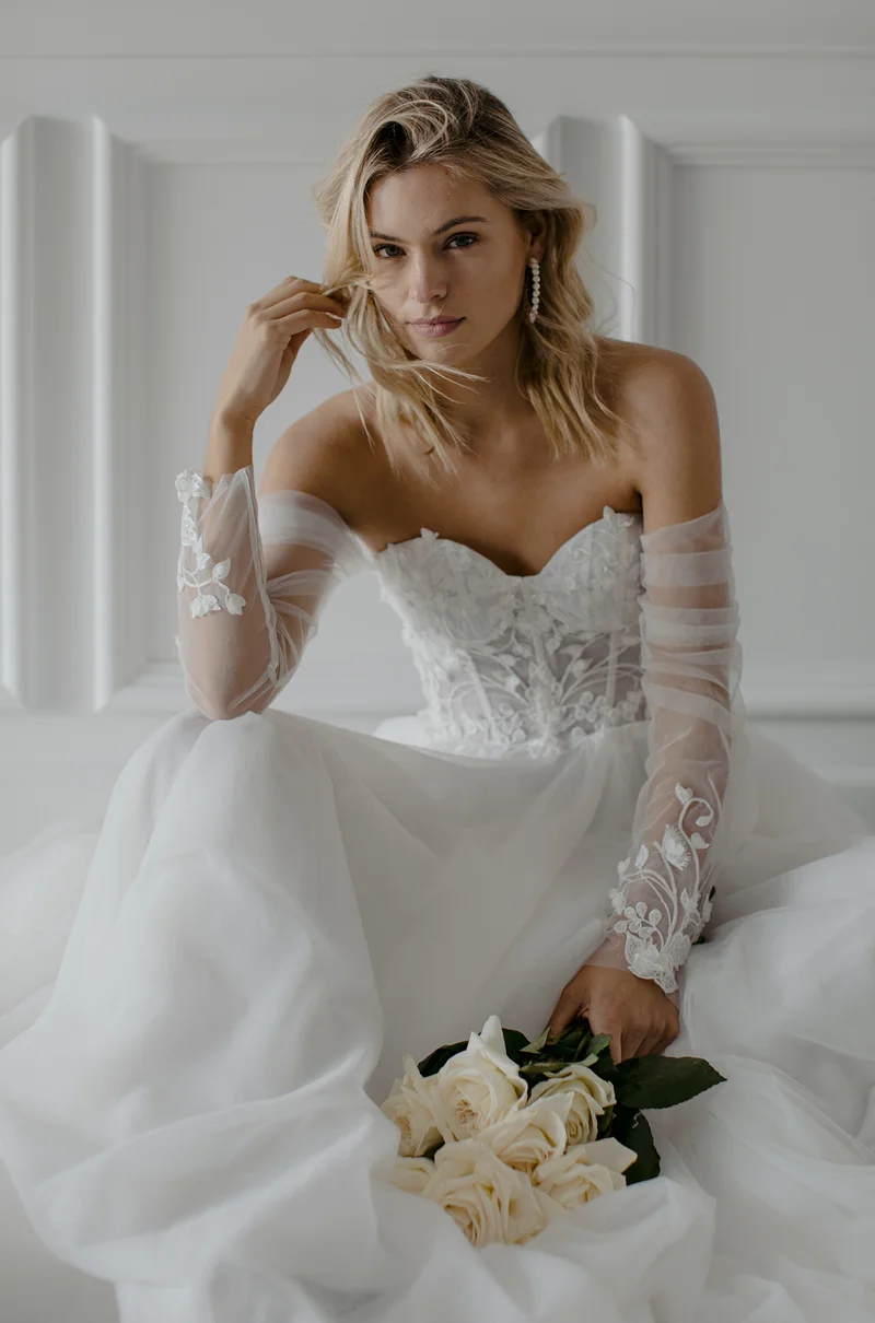 We have been on a roll recently bringing you our fave 25 Embellished Bridal Gowns and 20 Coloured Bridal Gowns. Now, feast your eyes on perhaps our best work yet, a celebration of the humble sleeve. You see, dear readers, all sleeves weren’t created equal and we have only included the best going around from the romantic, full sleeves of Leto’s Piece 28 through to the endlessly sweet detachable sleeves of Made With Love Bridal’s Max Gown.