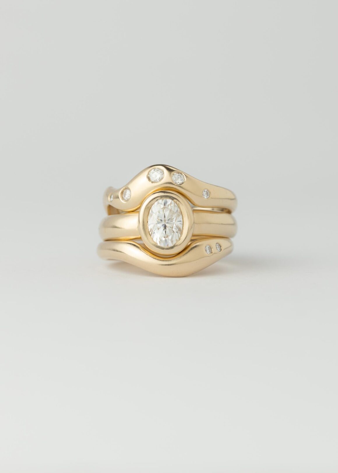 The collection features solitaire engagement rings and paired wedding bands designed to be stacked, layered, and loved. Pieces are made to order (we love a slow fashion moment), so you can choose your own stone, metal, and finish. Whether you’re after something minimal and sculptural or a little more luxe, your ring will be as one-of-a-kind as your love story.