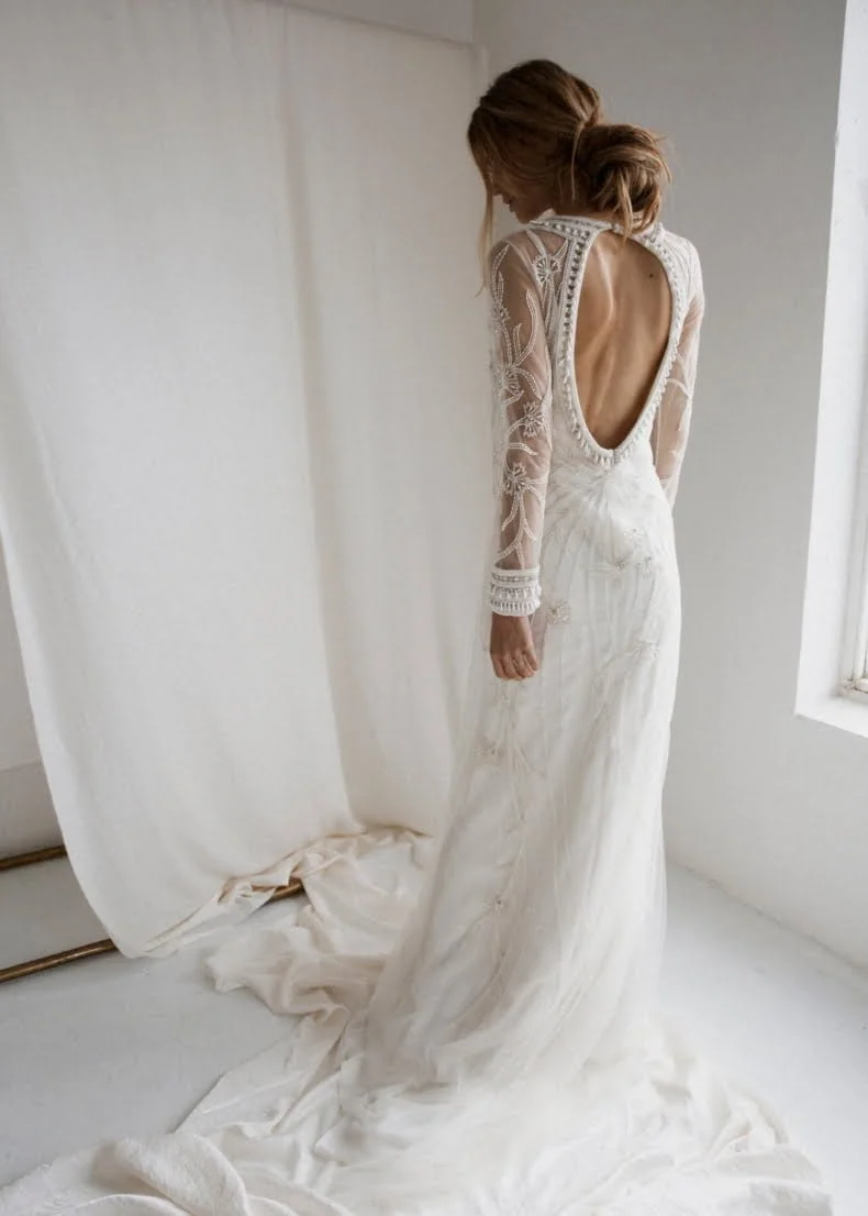 Head into Sydney bridal boutique, Hope X Page if you’re keen to get your hands on this collection and try them on. And if you’re in Queensland, book in for the Bo & Luca trunk show at Sphere Collective on the 16th-18th of November. For now, though, simply scroll down and enjoy each dress from almost every angle. Prices range from $2500 to $9000. And if you want to complete your look, check out their gorgeous headpiece that we included in our Top 25 Wedding Day Accessories and statement earrings in the Top 18 Pearls for the Girls.
