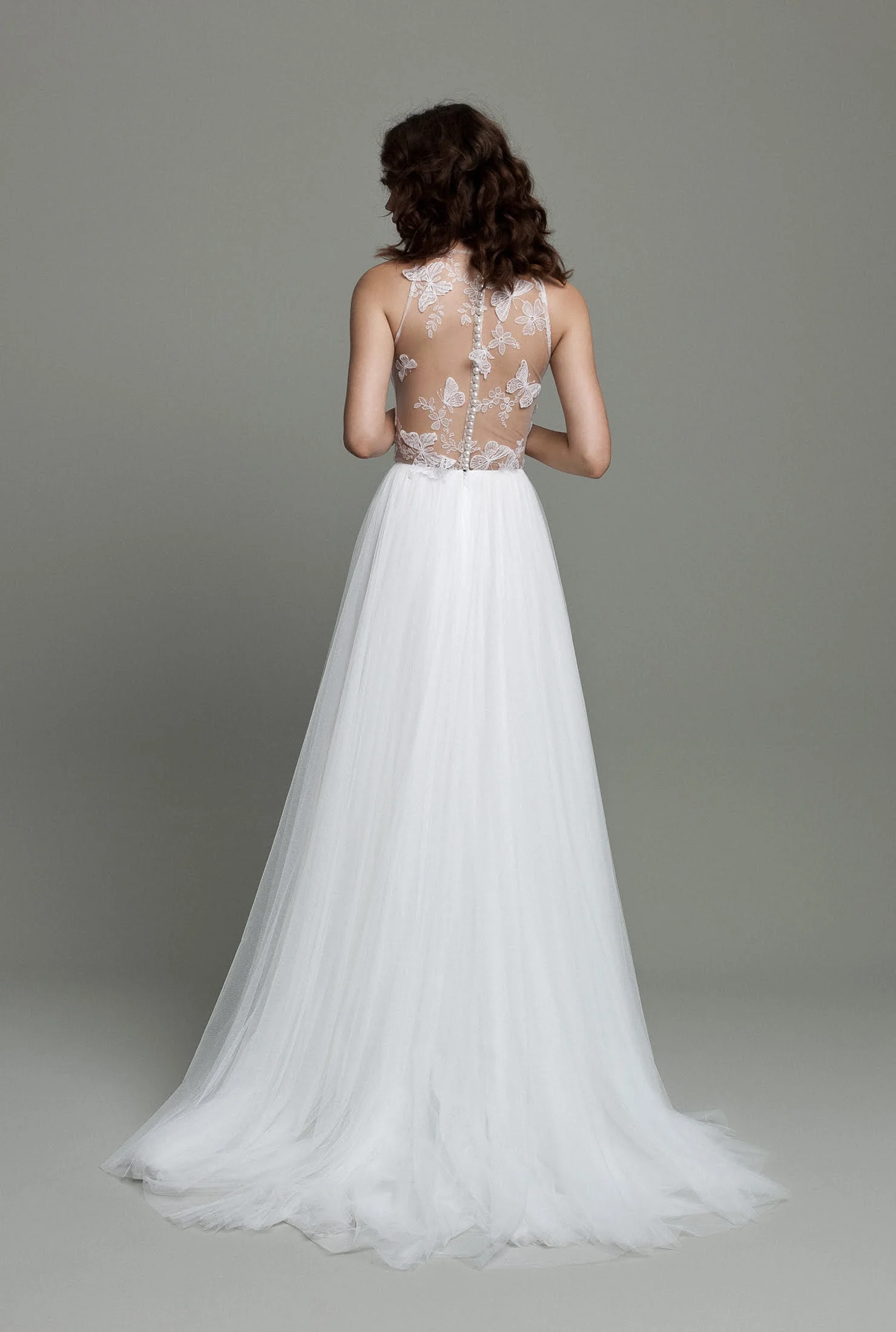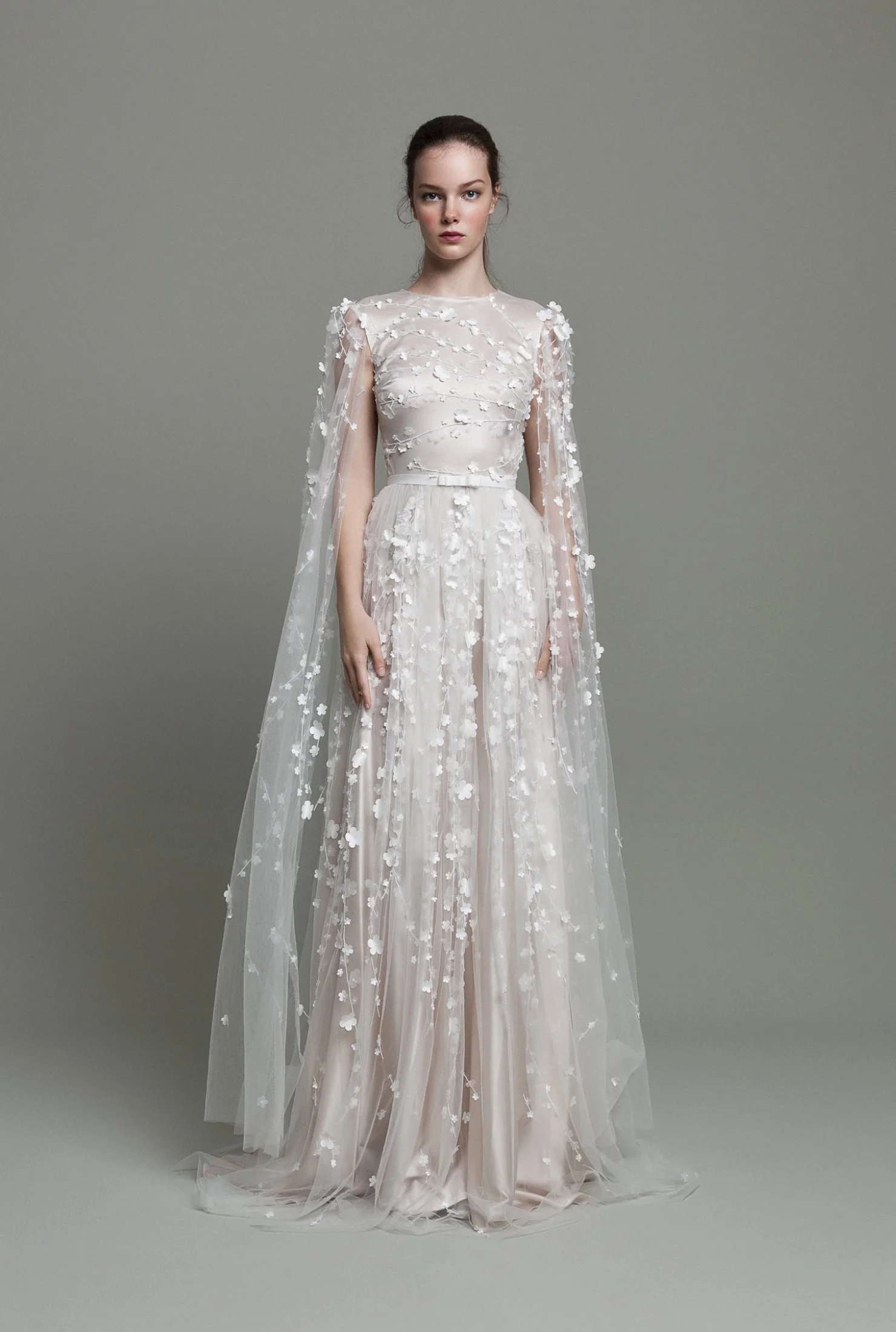 It’s whimsical bridal in the very best way and their new collection, WHISPER, is on its way. The designer was inspired by “the beautiful nature of Iceland, where the calming whispers of the wind, unusual colours, lights and flowers influenced the unique fabrics and designs for this magical collection.” It features texture in spades, offset by sexy sheer fabrics and structure in all the right places. There are also intricate details, from beading to laser cut appliqués, tulle, lace and even colour (we’re talkin’ lime green, royal blue and a multi-coloured, patterned number that you simply have to see to believe).