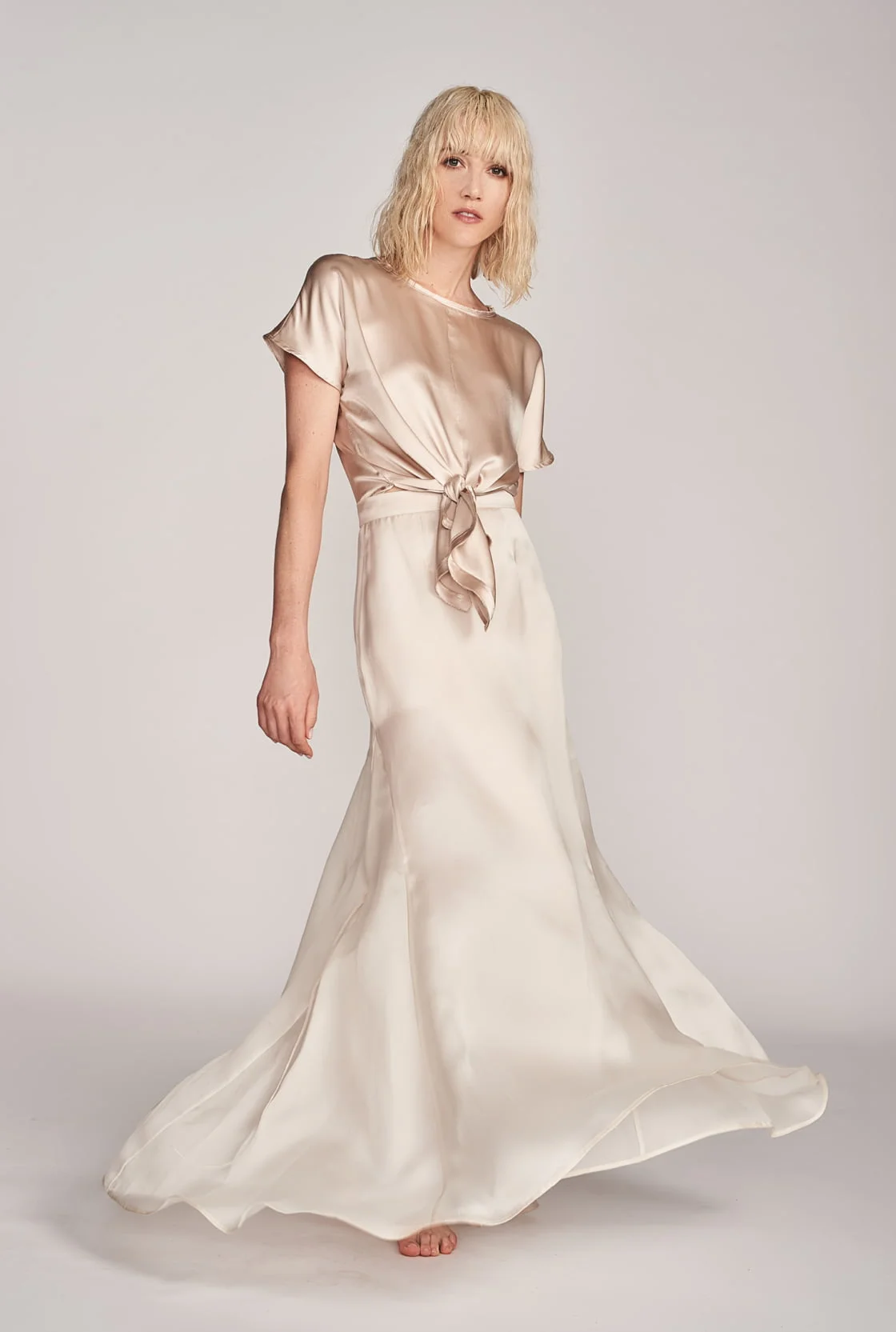 Liquid Light Top, $450, and Exhale Skirt, $995, Jacinta James.