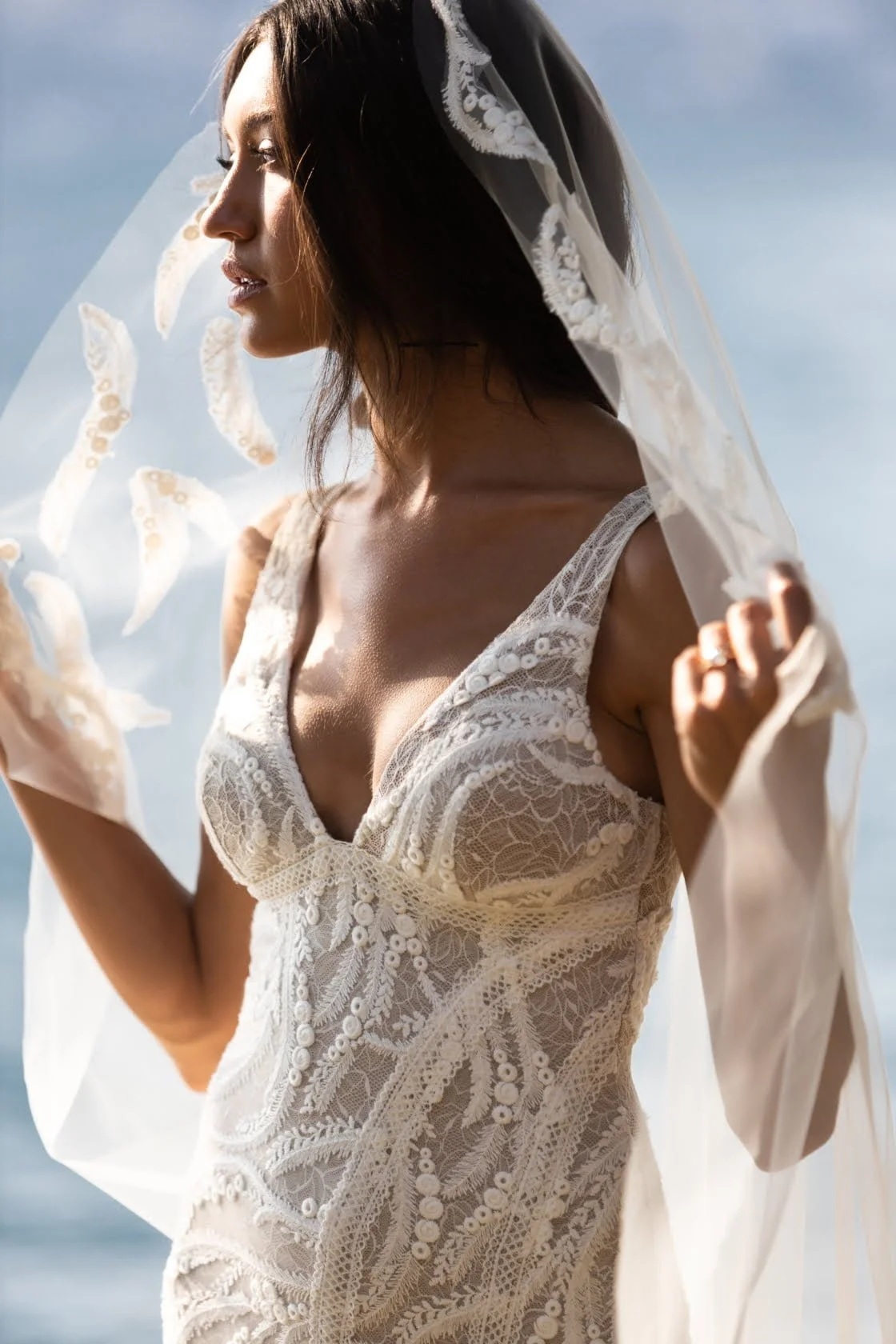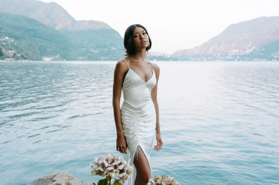 As if creating eight jaw-dropping new gowns (with prices ranging from $2500–$4600), plus two heavenly embroidered veils, wasn’t enough, the much-loved brand has stayed true to its reputation as a pioneer in the style stakes, launching the first-ever wedding dress designed to swim in. Yep, those midnight ‘Just Married’ swims are officially a thing now, and if you’re not totally convinced yet, trust us – the pics prove this is a whole vibe.