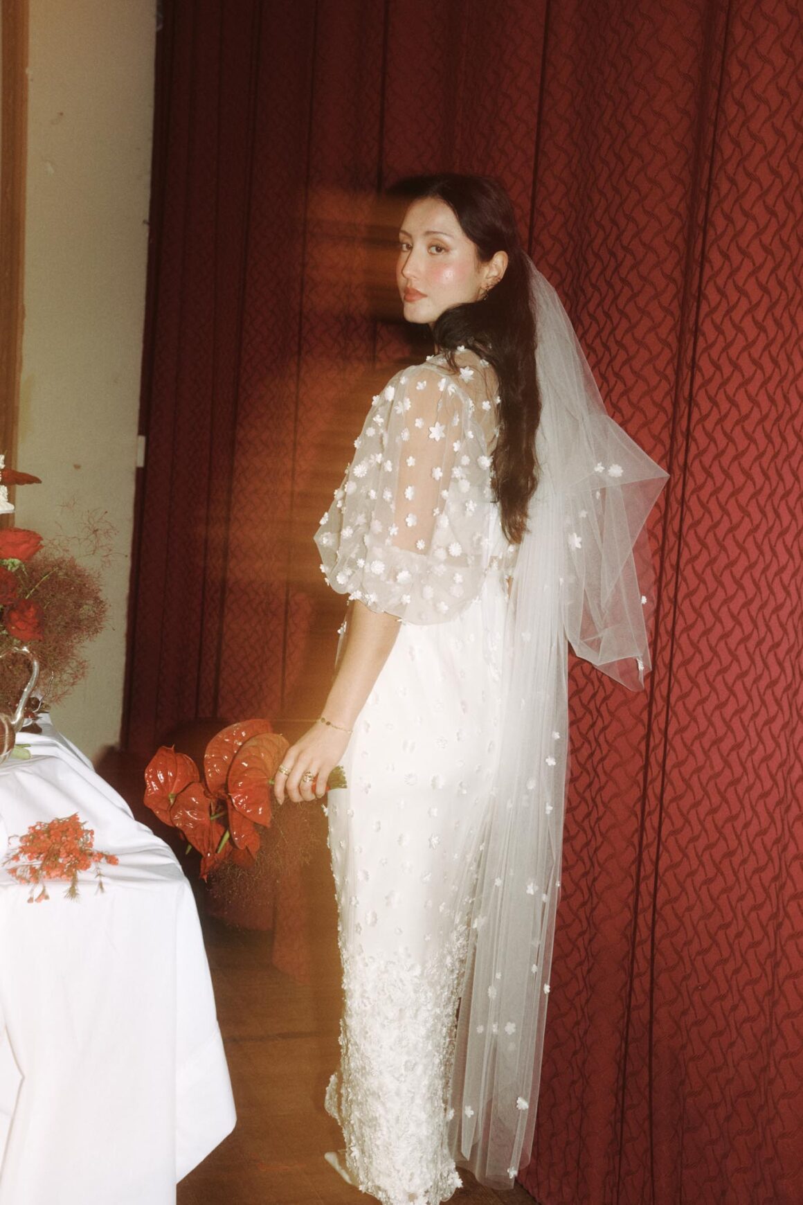 Texture and silhouette are at the heart of this incredibly beautiful bridal collection. Soft antique lace and sheer, weightless layers are set against longer, moodier shapes that glide rather than float. There’s a subtle gothic undertone woven throughout, yet the pieces remain wearable and unfussy. And with prices ranging from $789 to $4,229, the collection is accessible for a variety of bridal budgets.