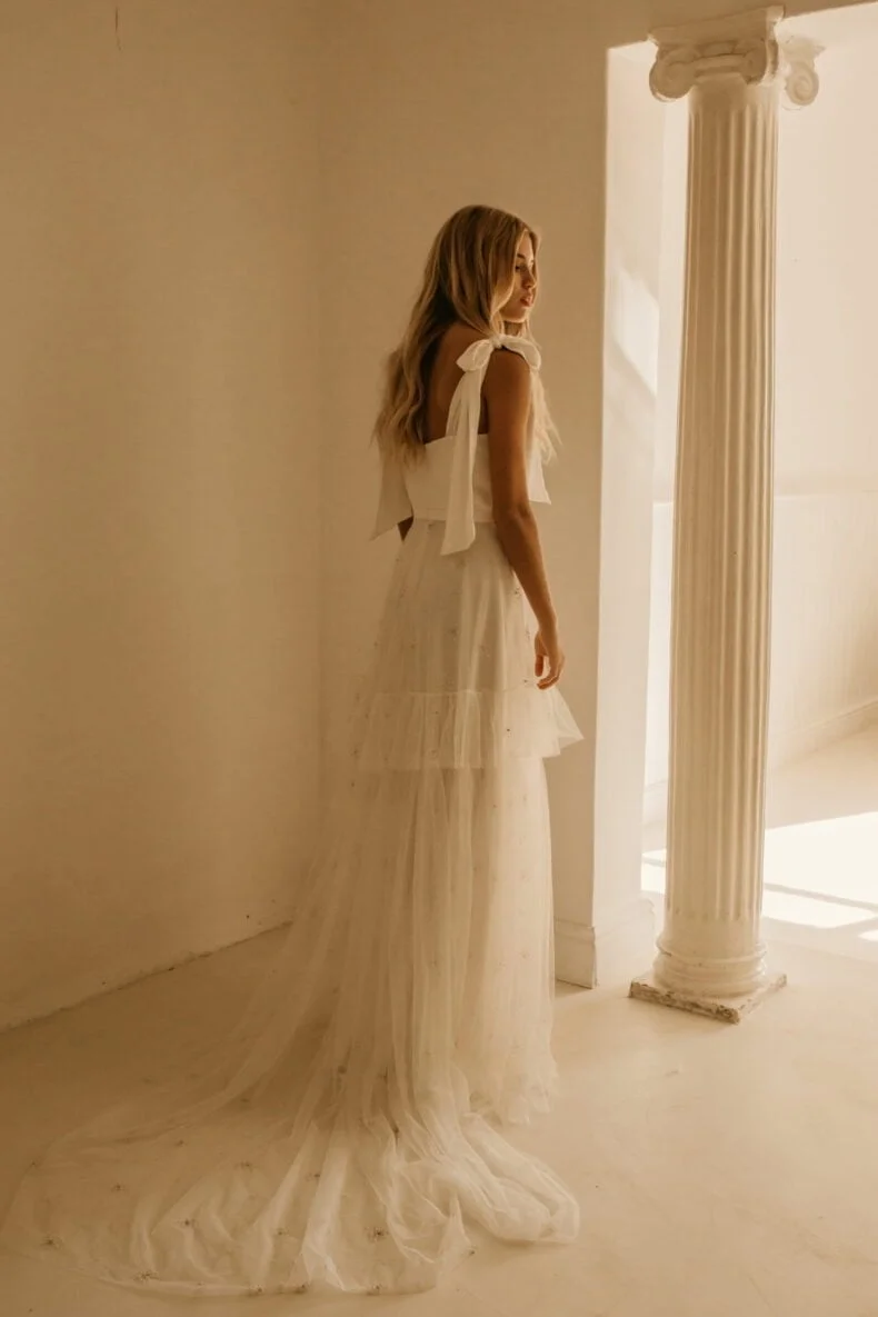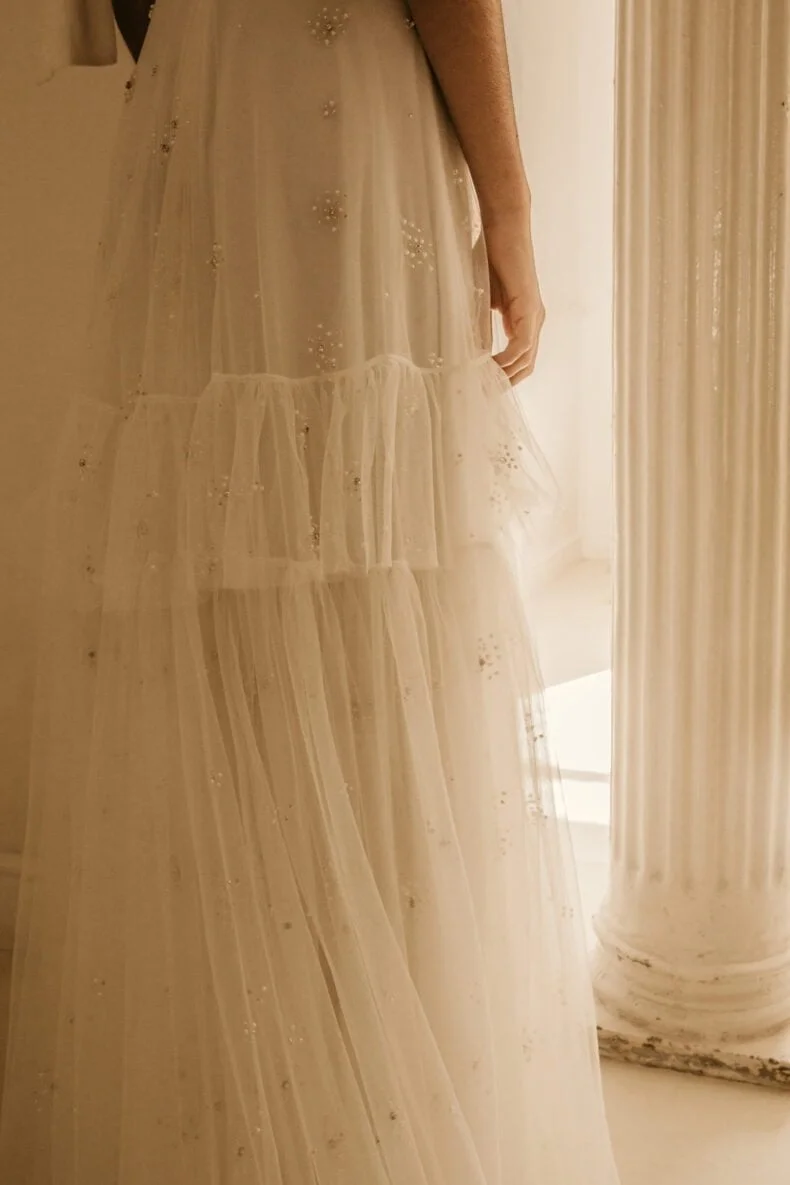 The brand will be dropping new styles on a regular basis – we’re talking monthly here, folks – meaning you can check in constantly to see what fresh and exciting pieces are being consistently revealed. You will find the seven different designs below, boasting intricate beading, soft tailoring, relaxed fabrics and timeless tulle. And they are all hand dyed in loose leaf white tea – just in case they weren’t unique enough for you already!