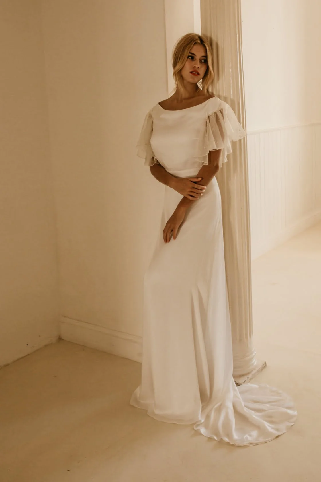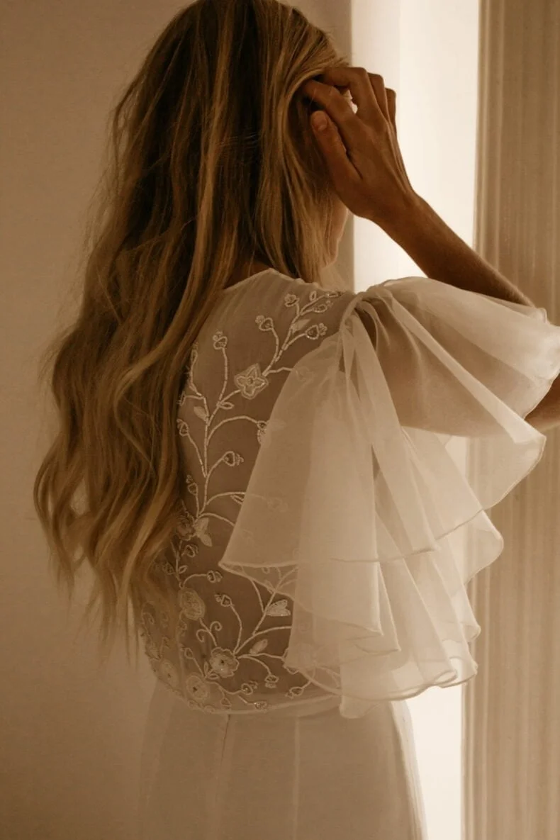 Designing for the modern, but relaxed, bohemium-inspired bride, the brand is femme with a slight 70s influence and the gowns have a luxe look and feel without breaking the bank. As in, they start from $850, guys. So scroll down for the new range and check out our real brides wearing (and raving about) Bo & Luca’s bridal gowns here, here and here…