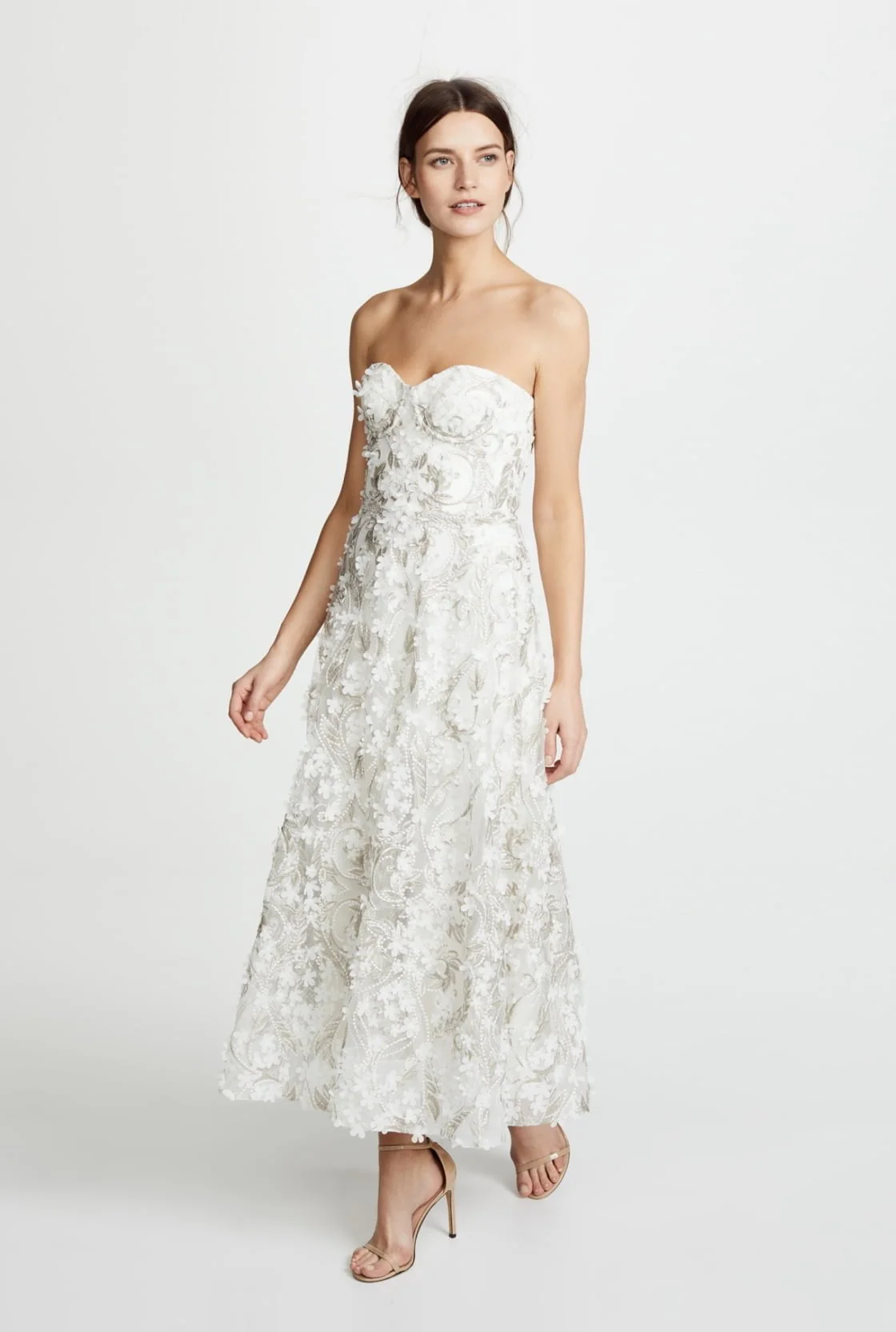 Marchesa Notte 3D Embroidered Strapless Gown, from $1500, shop online at Marchesa via Shopbop