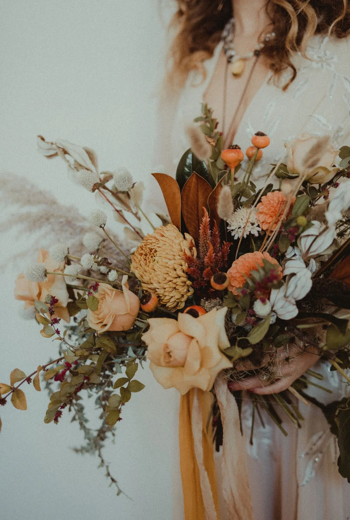 Forget less is more. More is best when it comes to a bold, beautiful and bountiful bouquet for your day of good times. We’re talking wonderfully large roses and peonies, orchards that gracefully fall to the floor and a wonderland of complimentary colours in shades of pinks, peaches, creams and violets.