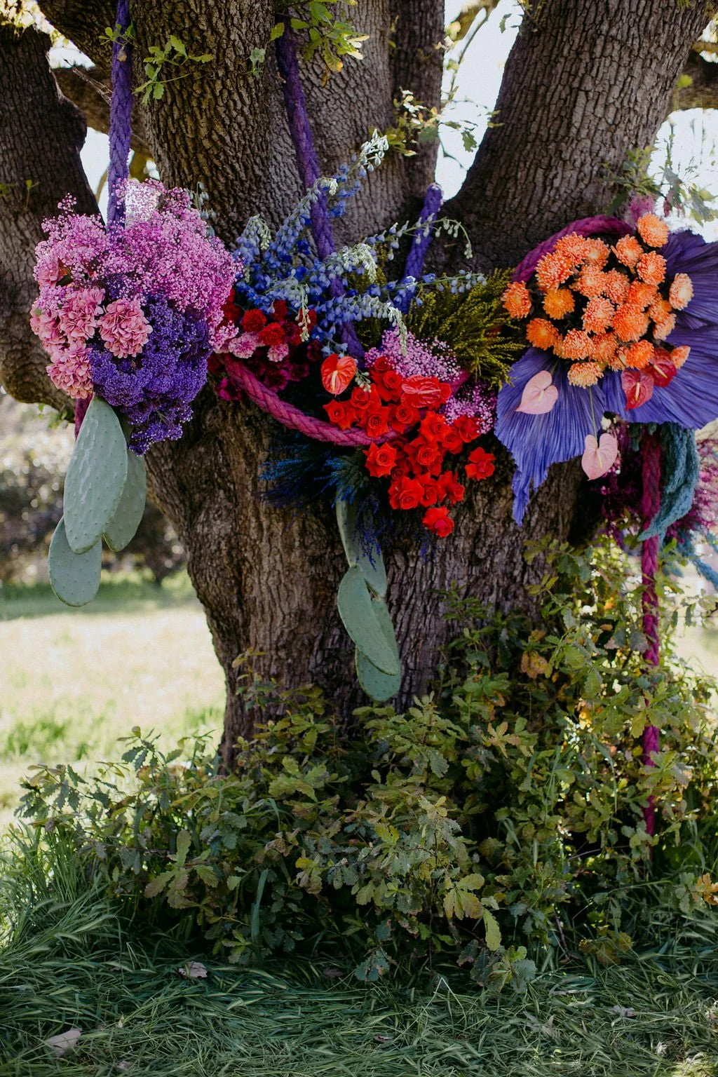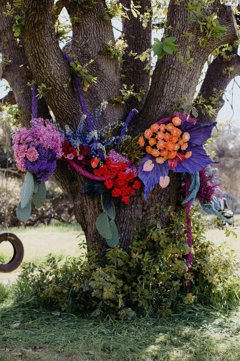 Maybe you’re keen on a more quirky vibe in which case the giant stack of old tyres spray painted purple and decorated with lemons by Victorian fave Nomad Styling (and photographed by Beck Rocchi) might be more up your alley? A naked tipi might tickle your fancy like the one Poppy Culture created below (complete with dream catchers mind you and photographed by Georgia Verrellsor something circular perhaps? Like that beautiful setup Sydney faves Aisle of Eden created at our fave bush venue Audley Dancehall  (captured by Gui Jorge)