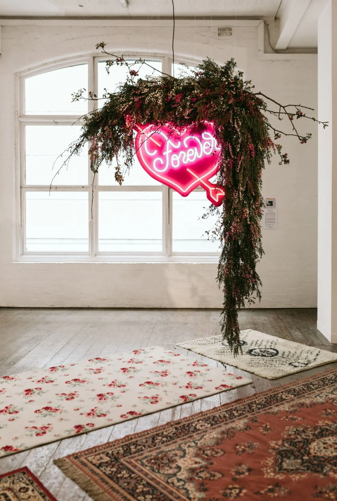 We’re sure you’ll find something you love here – whether you’re after industrial vibes, like this gorgeous set up above (with styling and neon hire by Melbourne folk Good Day Rentals and flowers by Good Grace and Humour) or something a little different a’la Ash and Dan’s circular floral arbour (below) that was topped off with a decorative skull and a tequila bar – yep you read that right, a tequila bar. At the ceremony. Talk about a genius way to eliminate those nerves!