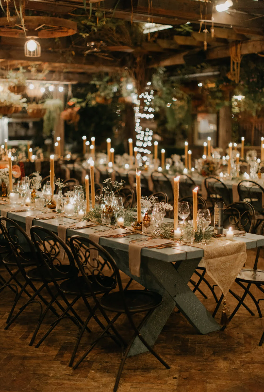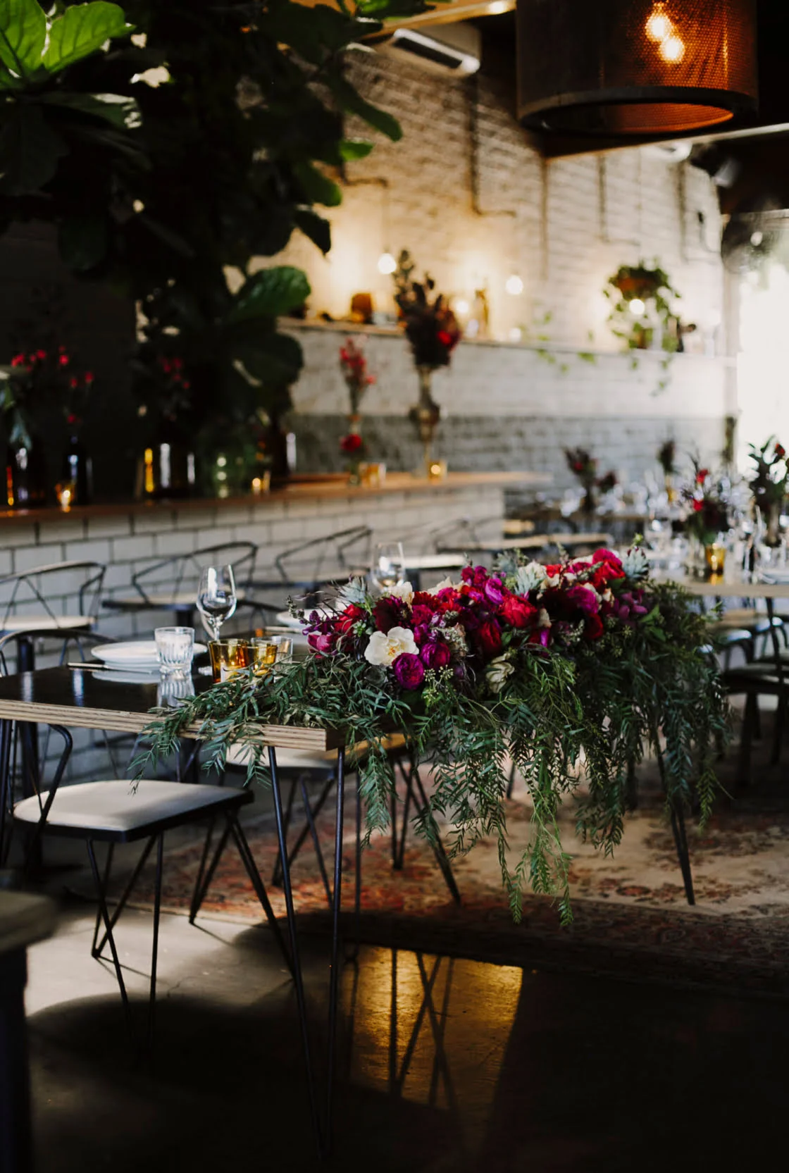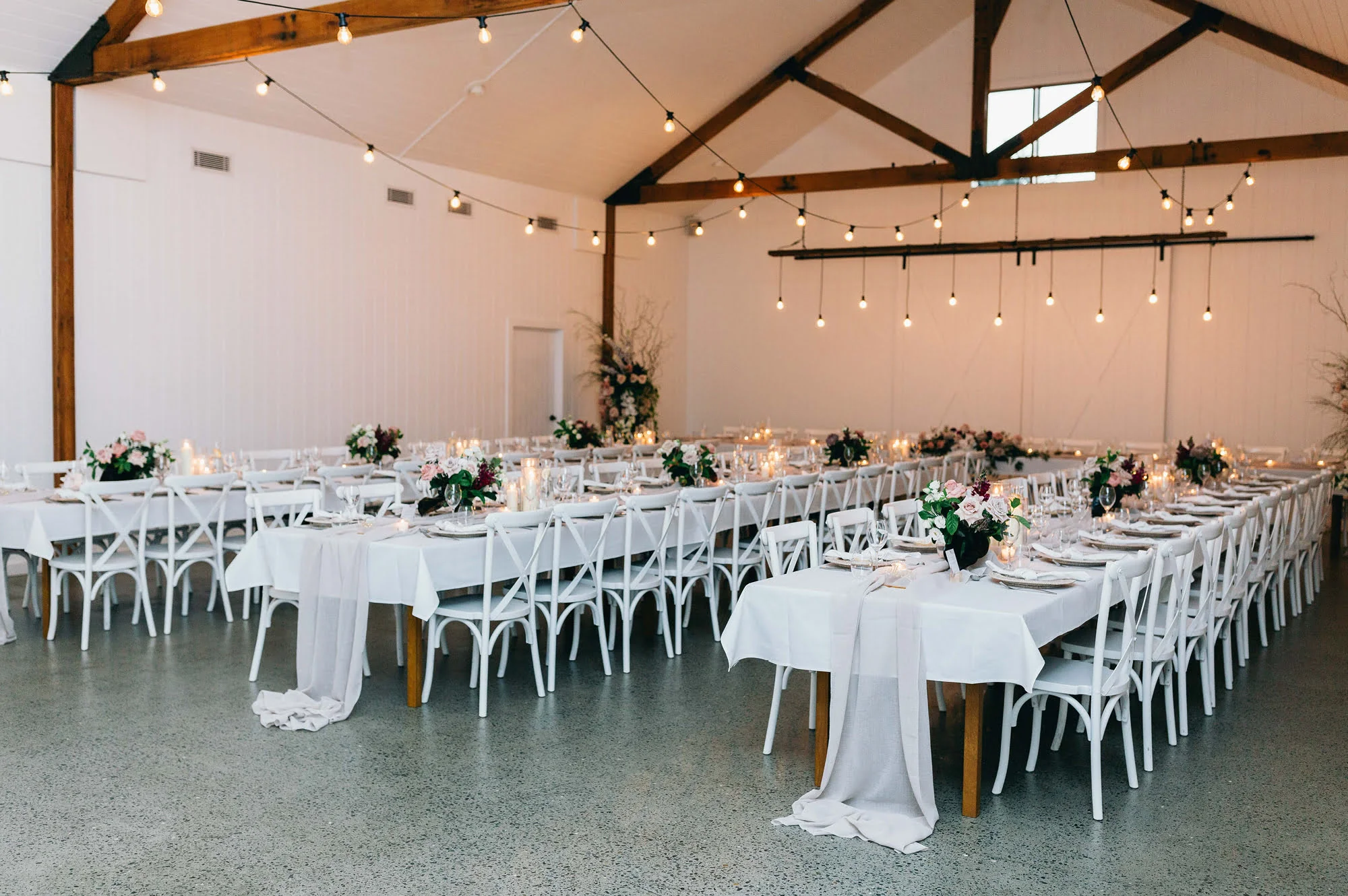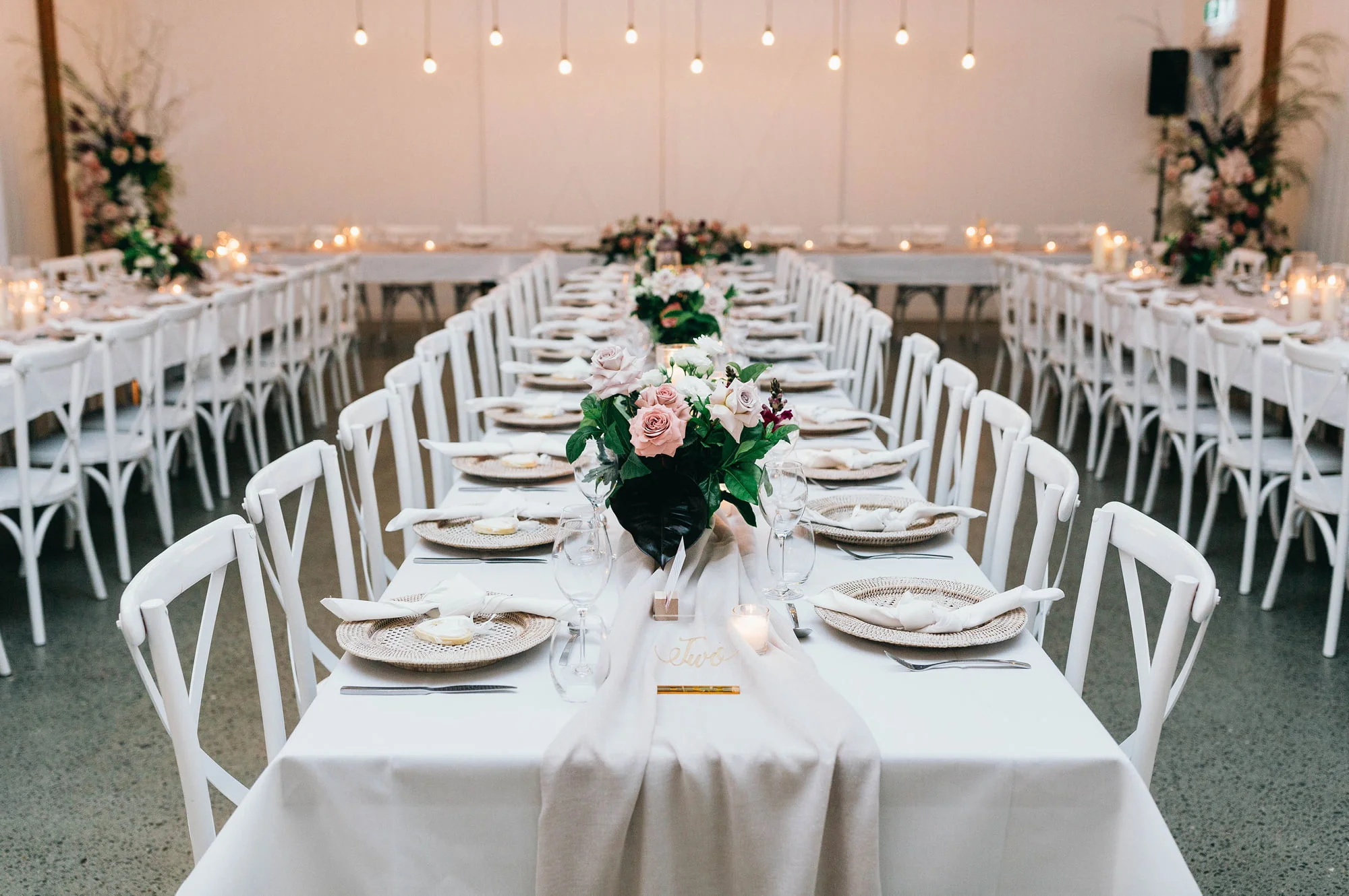 Whether you’re styling an intimate table at your local casual dining establishment (like the above with epic floating florals from Melbourne faves Good Grace & Humour) or a hosting a huge sitdown wedding for a 100 of your nearest and dearest (like the gorgeous set up immediately below at one of our fave Tweed Hinterland wedding venues, the barn at Summergrove Estate) we have something here for everyone. How great are those hanging festoon lights by the way!