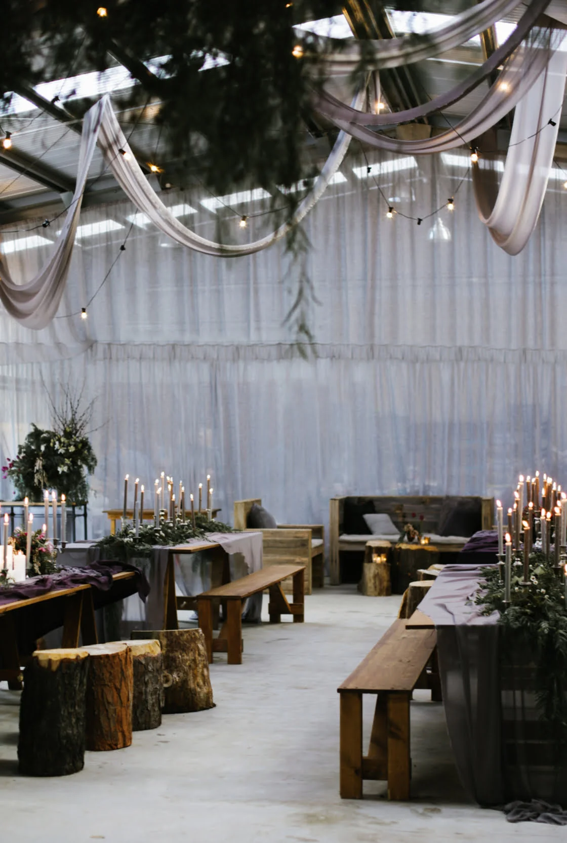 Further below you’ll also find candlelight inspiration, neon signs, teepee styling ideas and intimate lunchtime setups for a dozen of your fave humans (complete with custom made matchboxes for favours). But the good ideas don’t end there. Check out the bums on the sand approach to reception seating further down along with the epic industrial styling ideas second from the bottom (with florals to boot by Pomp & Splendour) and, last but not least, right at the bottom there, the amazing fabric installation by Nomad Styling, who also happens to be one of our Top 20 Wedding Stylists to Follow on Instagram.