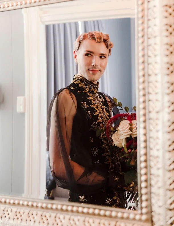 We blogged Matthew and Phillip’s gorge Brisbane wedding back in April 0f 2022 and this stunning portrait of Phillip in his custom made, gold embroidered Kate Willa gown was one of our most liked Insta photos of the year. Photographed by Kate Lund, you can check out the whole day here.