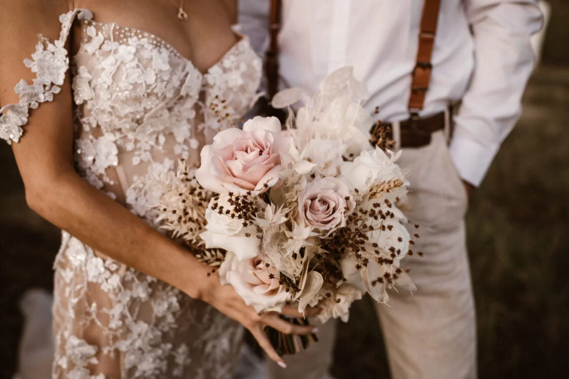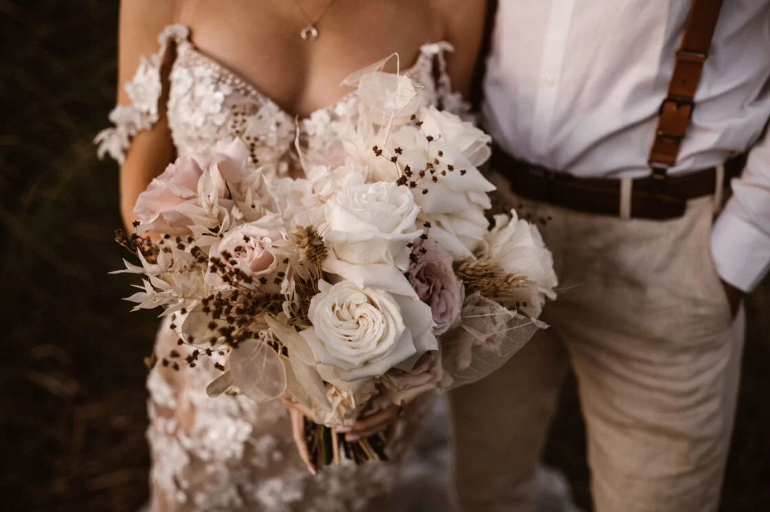 Nowadays, nothing is off-limits when it comes to bouquets – colours, blooms, textural elements, you name it! – which makes for some super fun inspo. But all that can be a little overwhelming. So here’s our two cents! Often, florists won’t actually nail down specific blooms with you until a few weeks out from your wedding. Florists are working with different growing seasons, availability (local and imported) and other unknown factors that affects what they will be able to procure the week of your nuptials.