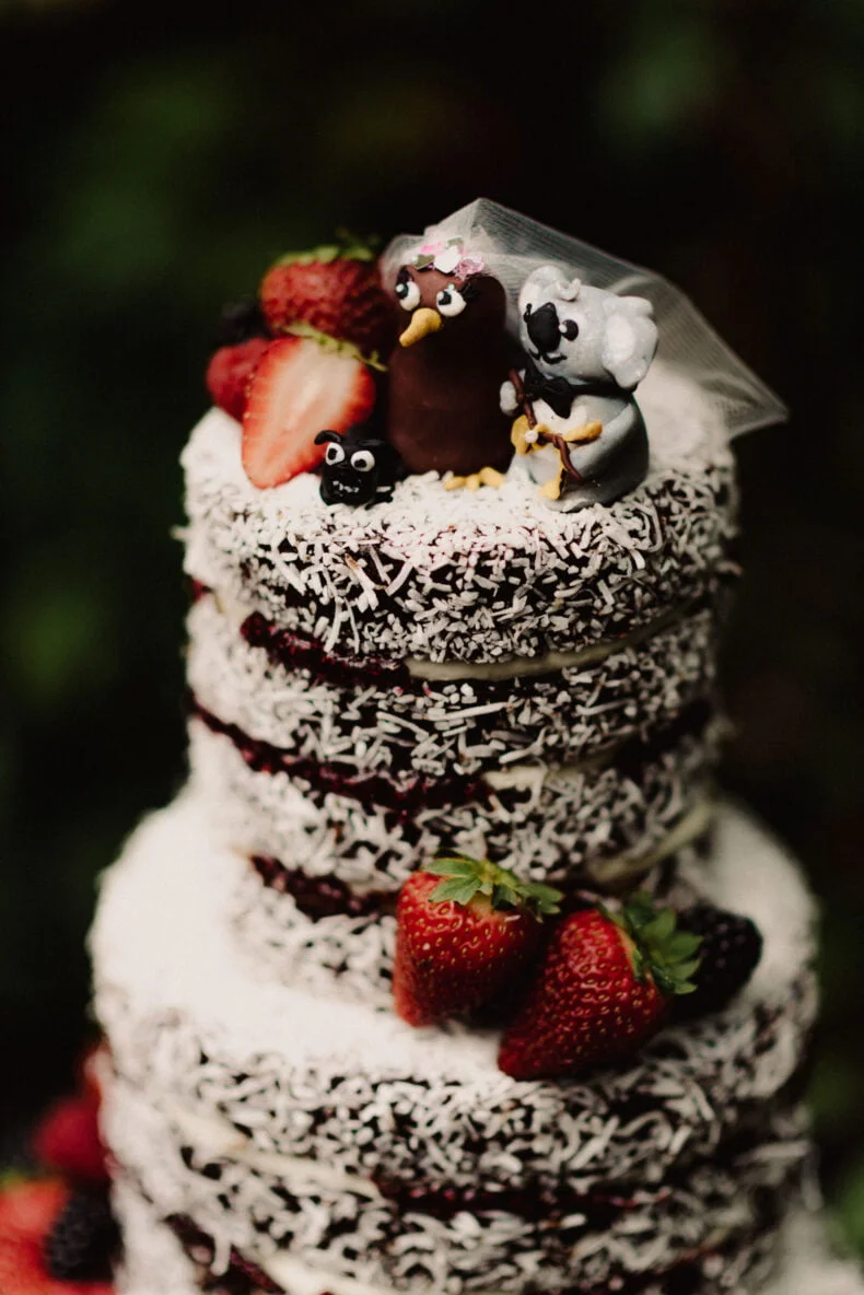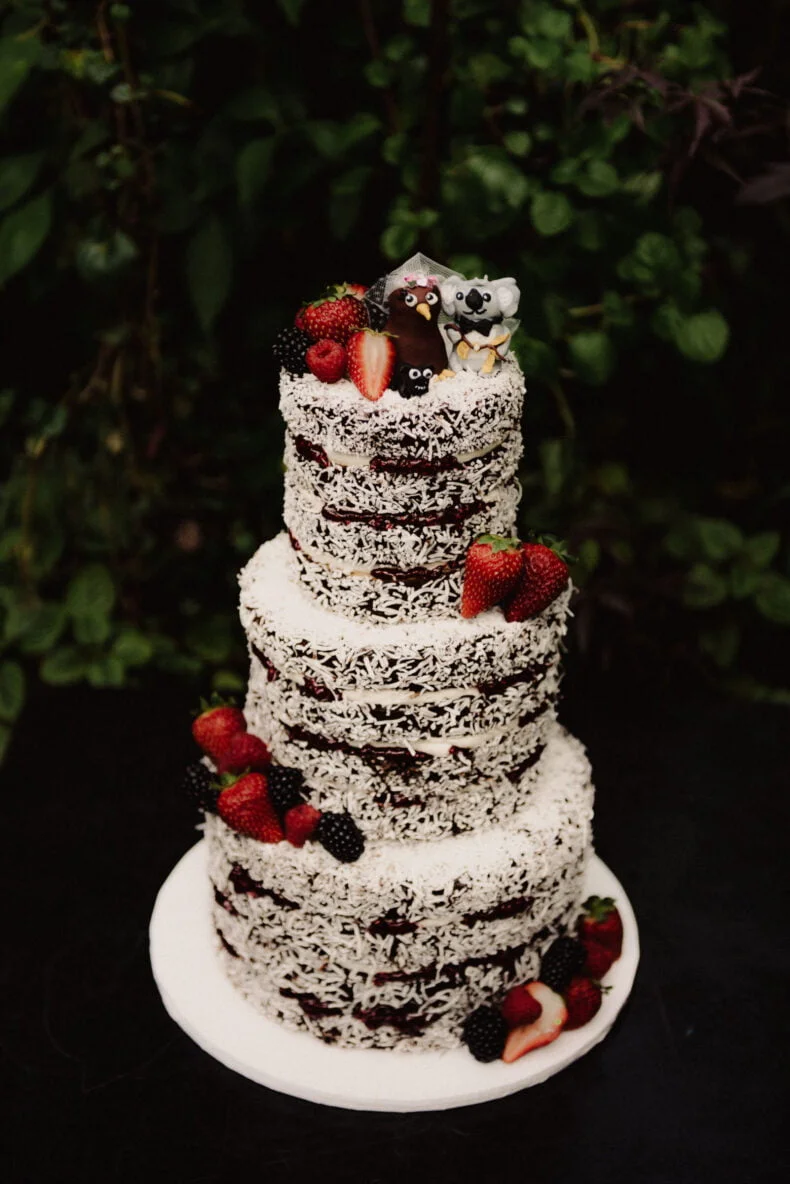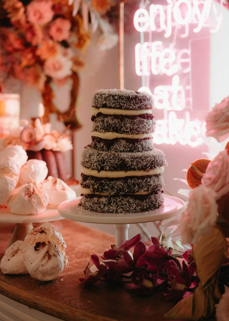 You’ll find inspo for cake toppers, dreamy colour combos and florals for days. If ‘more is more’ is the kind of vibe you subscribe to, you’re bound to find Stacey Brewer Cake’s fantasy above a real winner. A lover of lamingtons? Take a peep at Miss Ladybird Cake’s creation below.