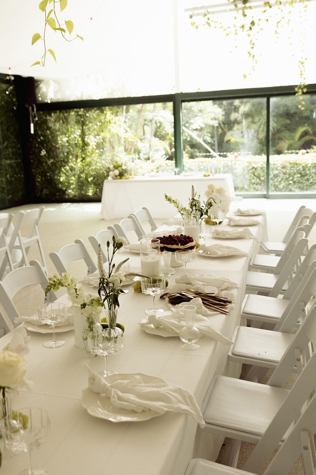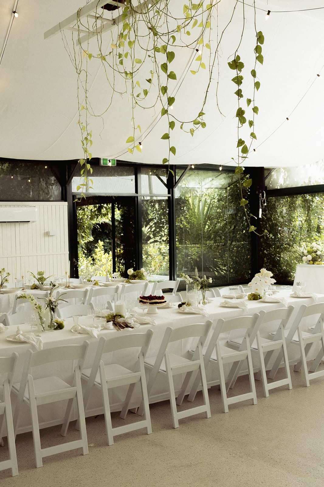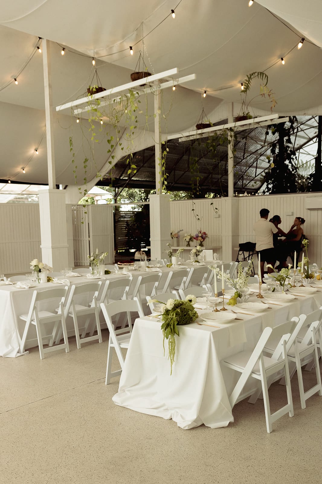 Seven acres of picturesque countryside gorgeousness, a laid-back aura in the air, plus a plethora of customisable package options—there’s a lot to love about Sol Gardens. Nestled in the Gold Coast’s Currumbin Valley is where you’ll find this gem, featuring flowing spring waters, lush greenery, and stunning celebration spaces. The team told us that for this shoot they “provided the space as a beautiful white canvas, featuring white cloths and a neutral palette designed to let the stylist’s vision shine,” adding that their focus is always on “creating unforgettable experiences, offering couples the flexibility to style their day their way.” That’s what we like to hear!