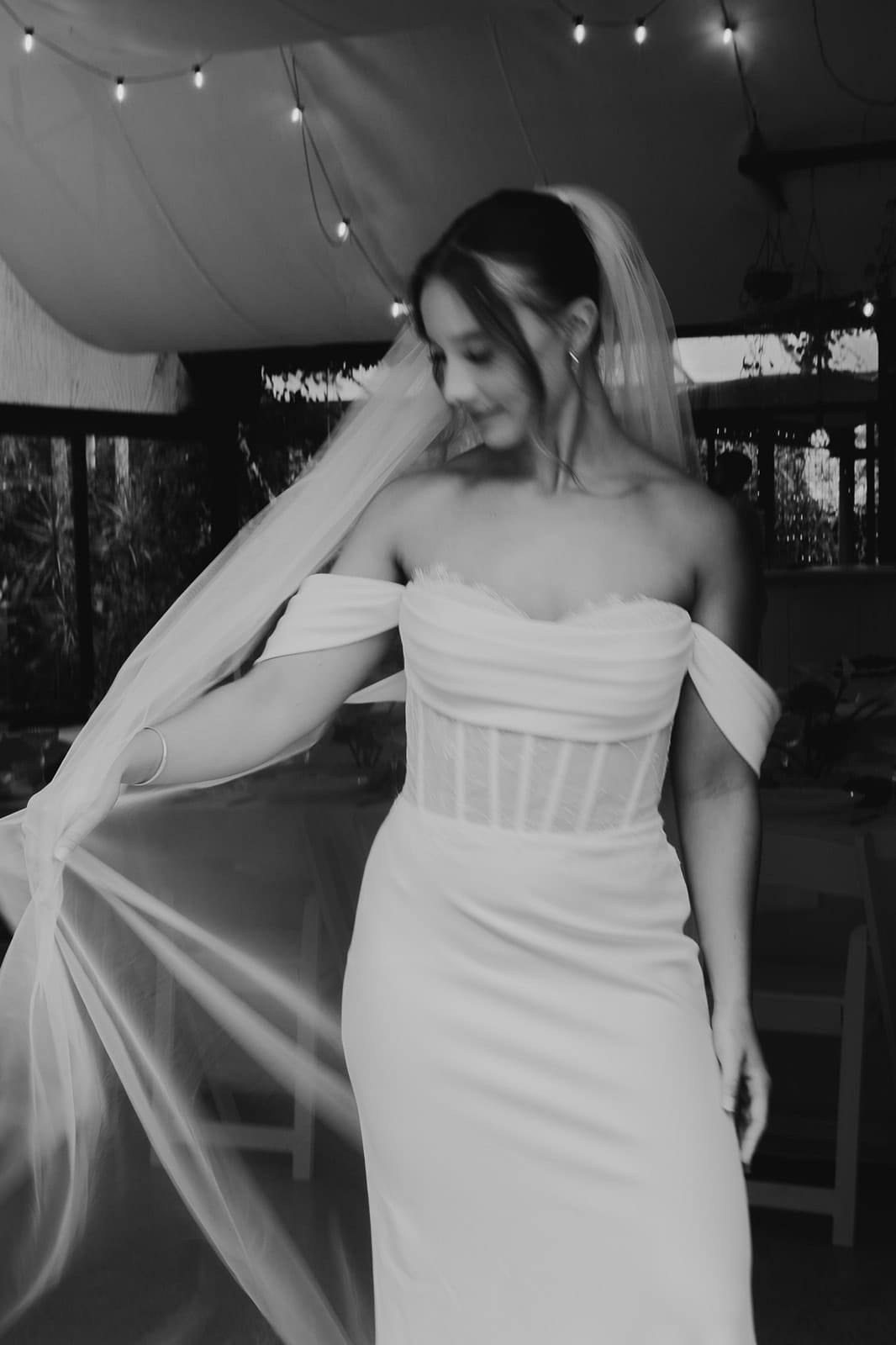 Rounding out this dream team is Pearl Bridal, who have, over the years, brought home a swag of awards as testament to their epic taste and personalised service. Each gown in their heavenly private studio has been carefully selected for its elegance and quality. “For this shoot,” the Gold Coast locals explained, “we wanted to capture the essence of romantic, ethereal elegance. Inspired by timeless bridal fashion and dreamy florals, we focused on a minimalist style gown with a fitted silhouette and romantic chantilly lace details.”
