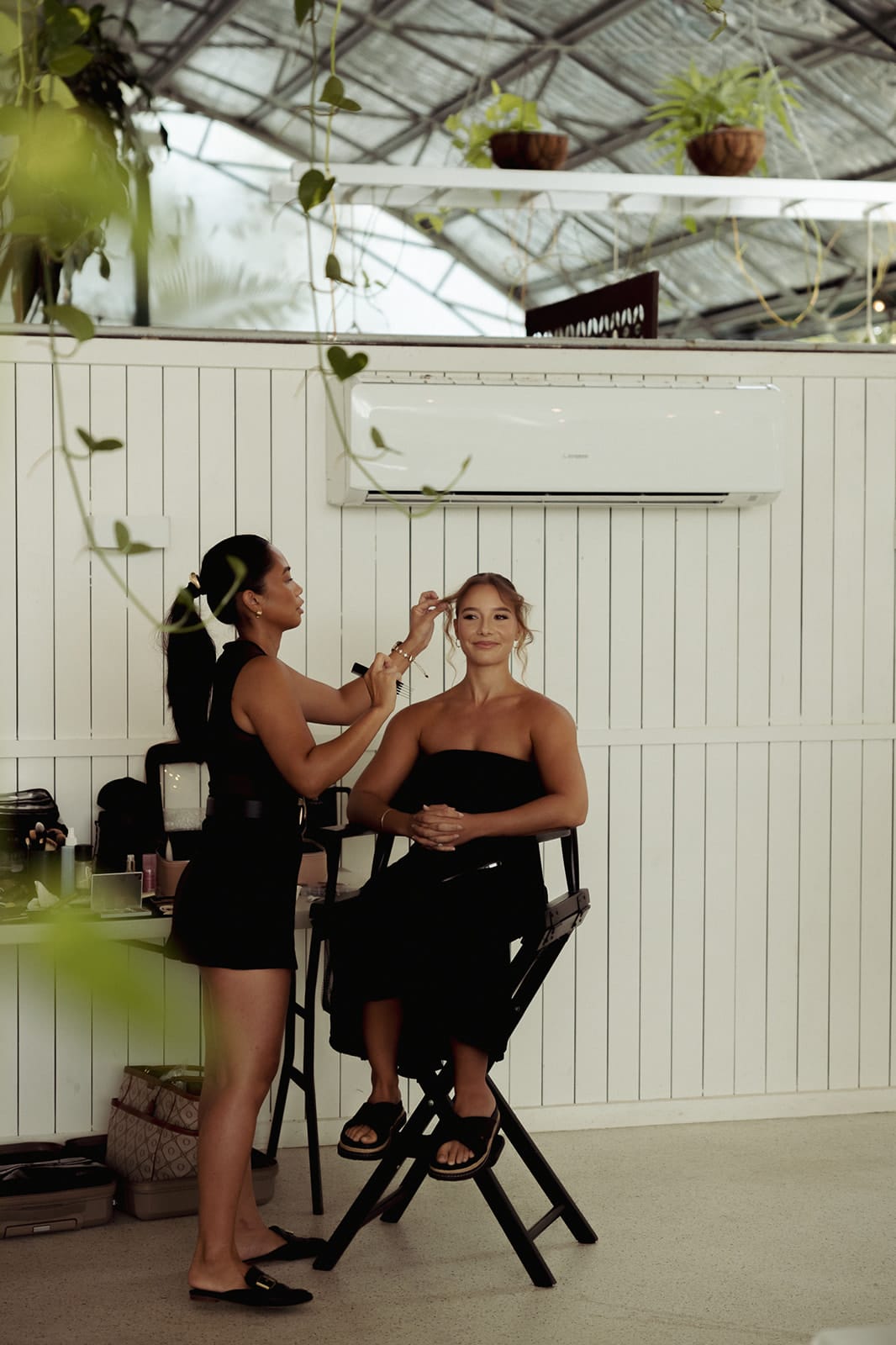 Theresa’s impressive skills in soft glam were a flawless fit for this modern romantic vibe. Based on the Gold Coast (but working weddings everywhere), Theresa has been making magic in hair and makeup for the past decade. Known for natural looks with a “luxury touch”, her focus is always on enhancing and [showcasing] “how beautiful the bride already is.” An ethos we can all get behind!