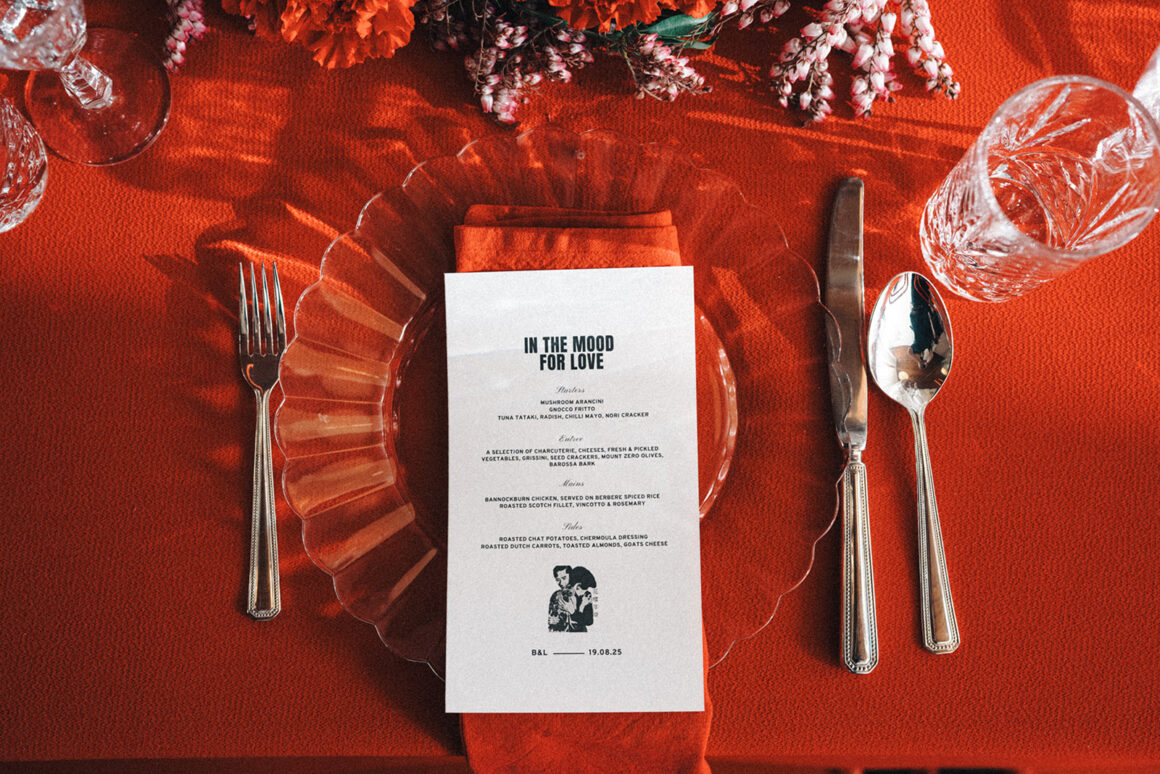 European-raised, now residing in Melbourne, ‘Groomy’ (as they’re affectionately known) shoots on digital and film in an unwaveringly honest, timeless and intimate way. Here, rather than capturing the couple through a conventional wedding photography lens, Groomy has focused on storytelling through snapping those candid, organic moments we love so much. “The palette, grounded in deep reds, pays homage to the film’s emotional tension and slow-burn romance,” Groomy says, exploring how In the Mood for Love informed the shoot’s signature shade.