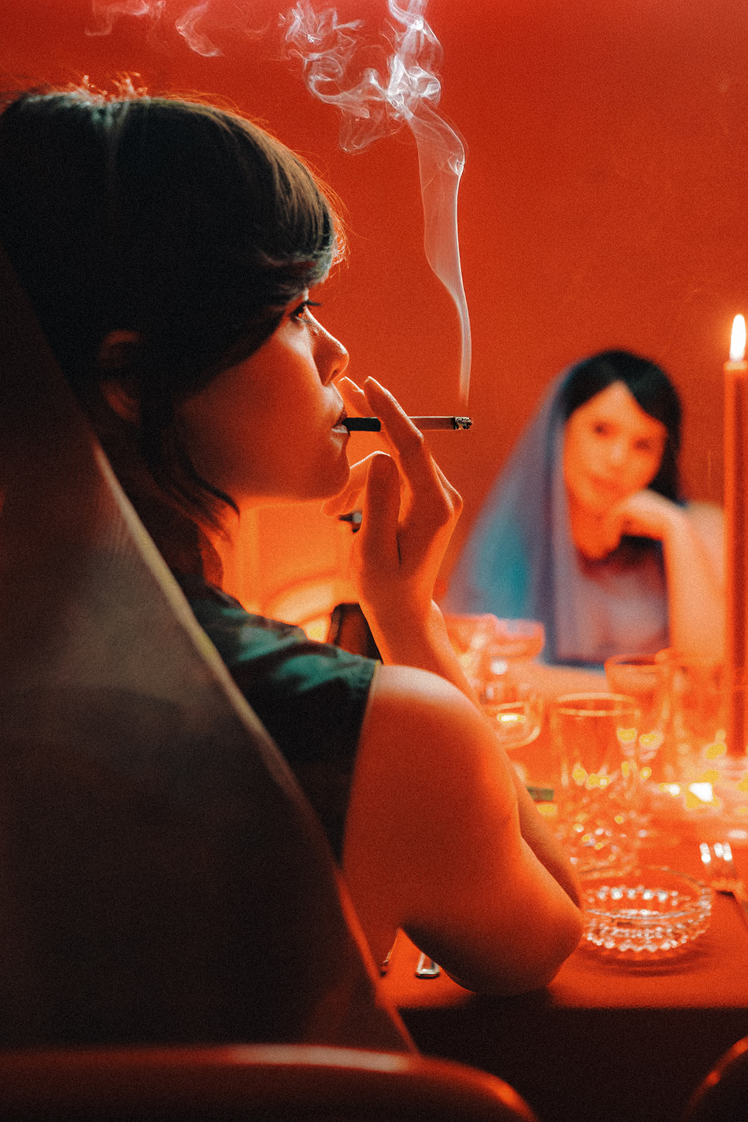 Set in 1960s Hong Kong, the film explores love, loss and forbidden desire. It’s recognisable for its use of lighting, particularly glowy warm amber moments and contrasting dark shadows – elements that feature heavily here.