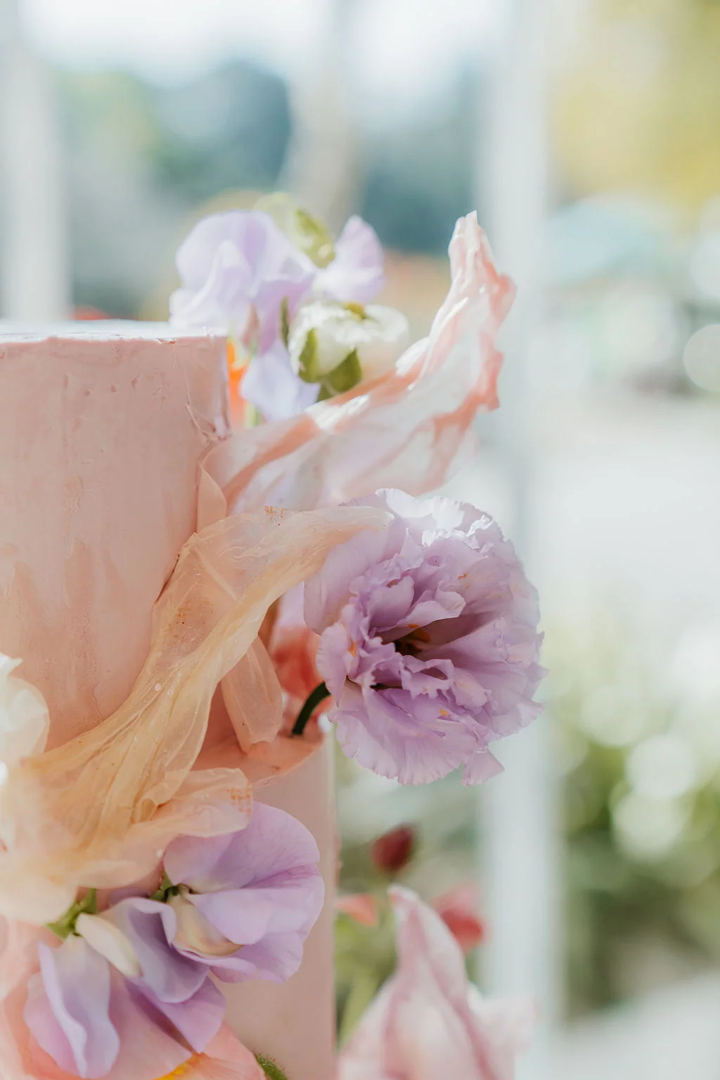 The stunner of a cake included in this shoot is an absolute masterpiece – and the reason why Zahara, the one-lady show behind Beurre (which means butter), earned her spot in our annual Top 20 Cake Makers to Follow on Instagram post recently. “The whimsy in this concept is introduced in the form of a cake garden, towering above a bed of sweetpeas and hellebore. The triple-tiered delight is adorned with structured icing as delicate as a fairies’ wings and crowned with a scattering of elegant white roses,” says photographer Emma.