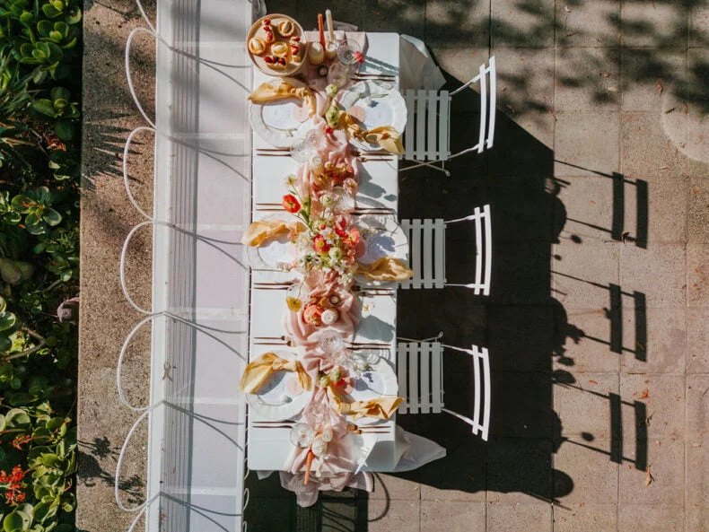 When this styled shoot hit our inbox, we were seriously impressed. Not only are the tablescapes and florals so damn beautiful, but the two colourways featured are bang on-trend – we are loving on the lilac paired with vintage blush, while the lemon/peach combo is giving serious Tuscan vibes. The brainchild of Elena of LNR Events, Lauren of State of Nature Floral Studio, and Emma Hawkins Photography, who took the gorg snaps, their “spring soiree” styling concept “tells a story of playful opulence, featuring the luxurious gold-rimmed dinnerware, cutlery and glassware of Event Merchant Co, delicate yet structured florals, all accented by the elegance of tapered candles,” they share.