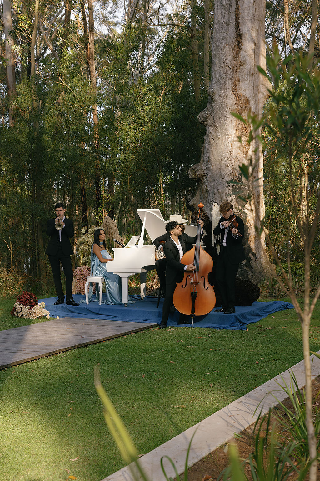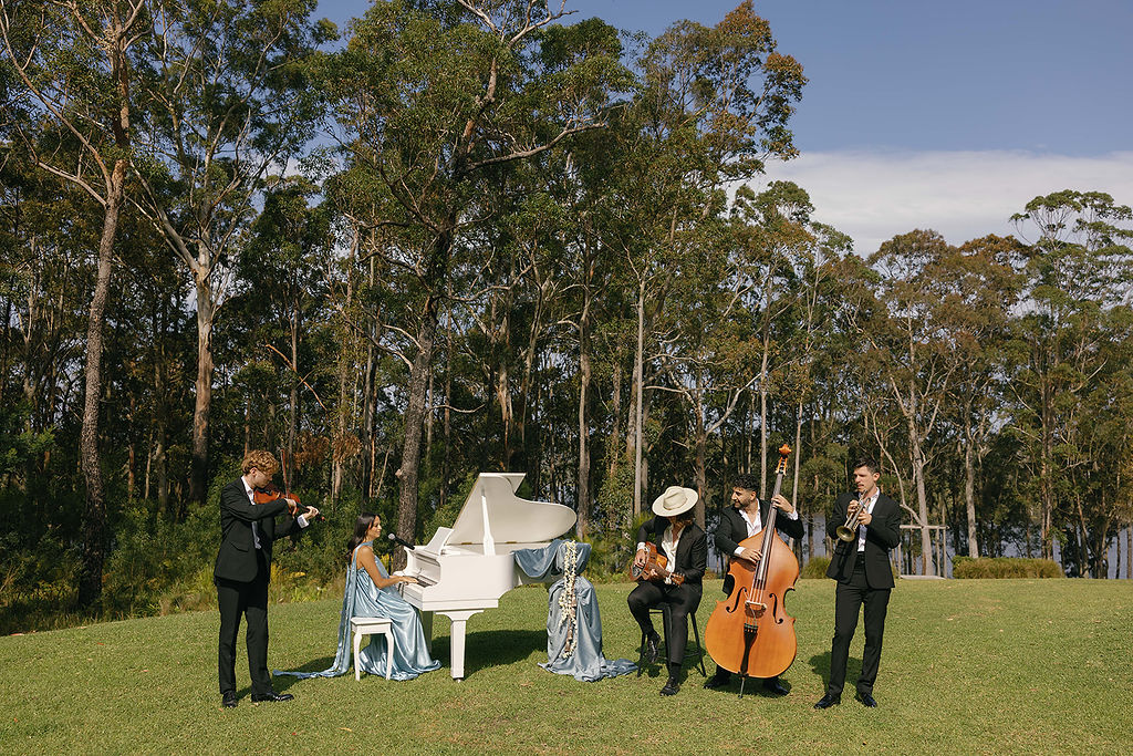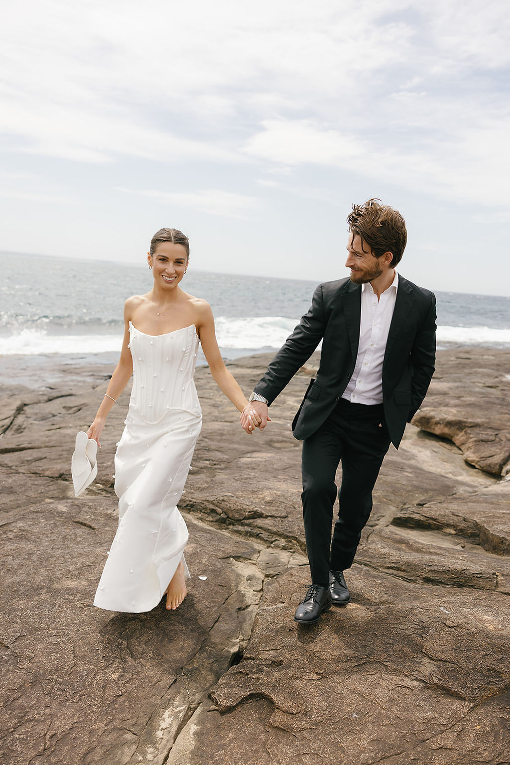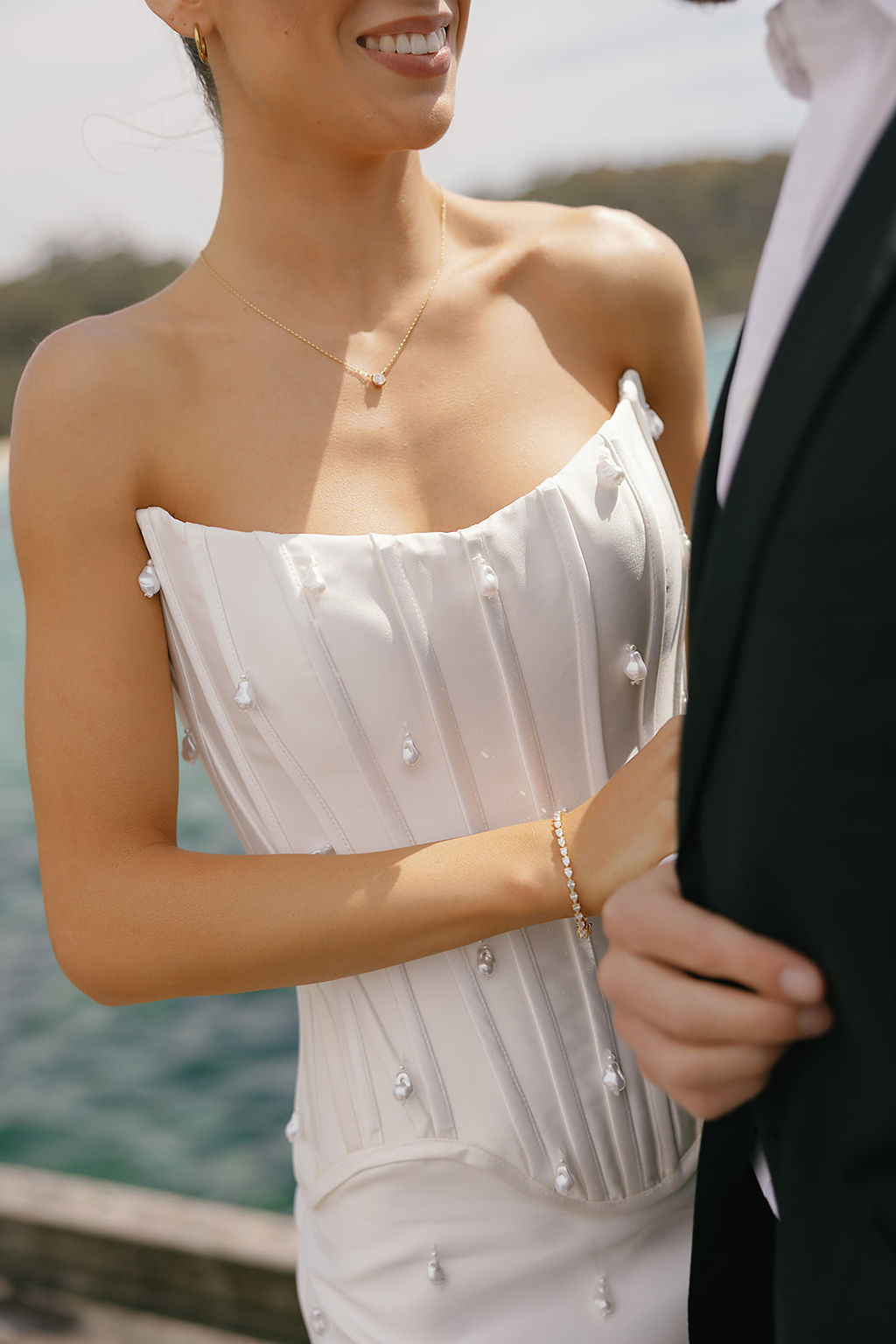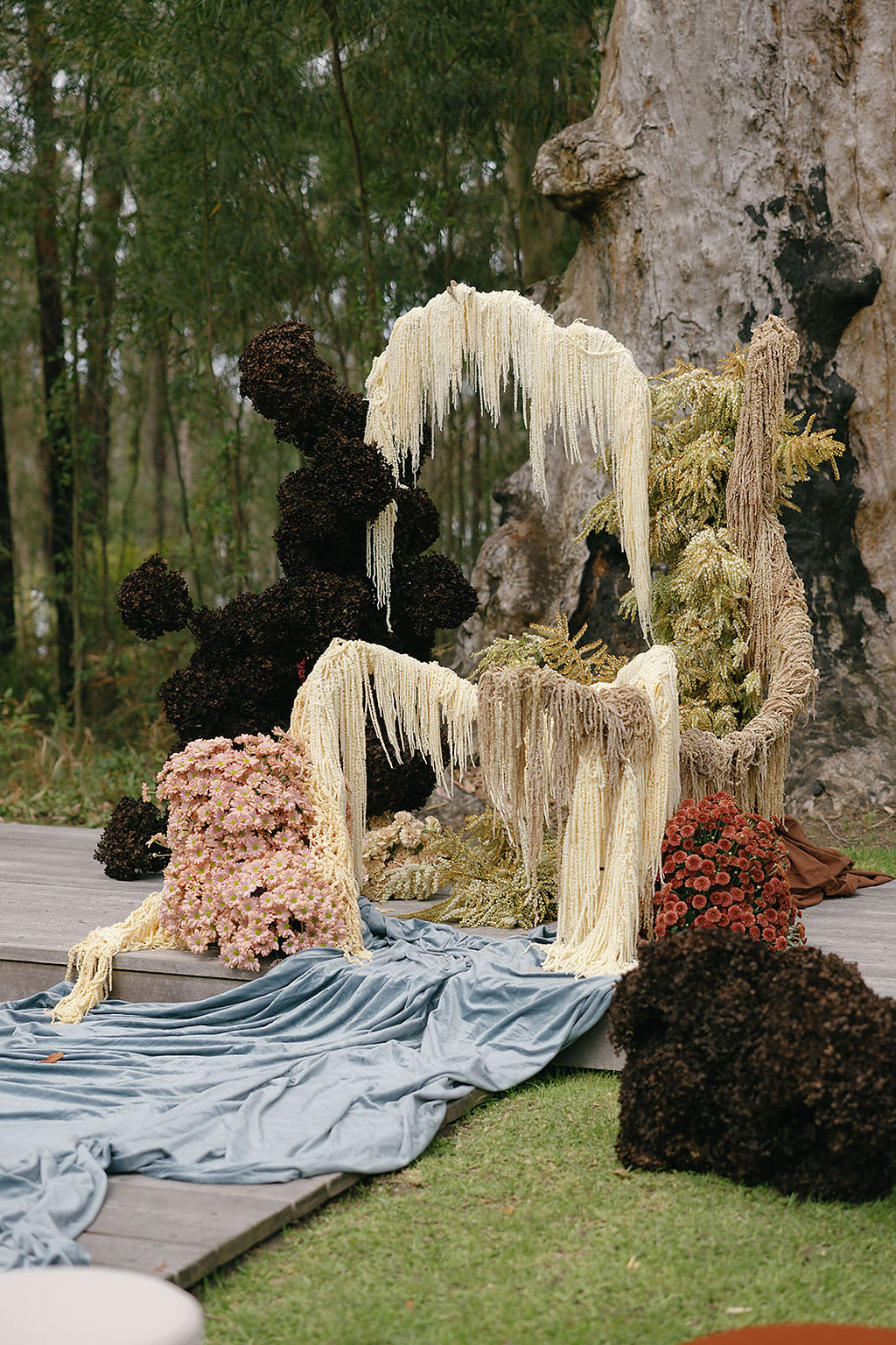 Effortless yet easy-going elegance set against raw natural beauty – this shoot feels right at home at The Jackson Ranch (one of our fave coastal places to get hitched). It’s not too far from the city (a 3.5hr drive from Sydney; 2hrs from Canberra), which is definitely appealing. But it’s the versatility of this venue that continues to capture our hearts. Think leafy canopies, lake glimpses, moody rainforest moments and the coastline not far away. “The Jackson Ranch feels like a secluded luxury retreat, tucked away from Sydney’s usual hustle and bustle,” says Kyle. “It’s calm and quiet, a place that invites you to slow down, whilst still having a high-end feel.”