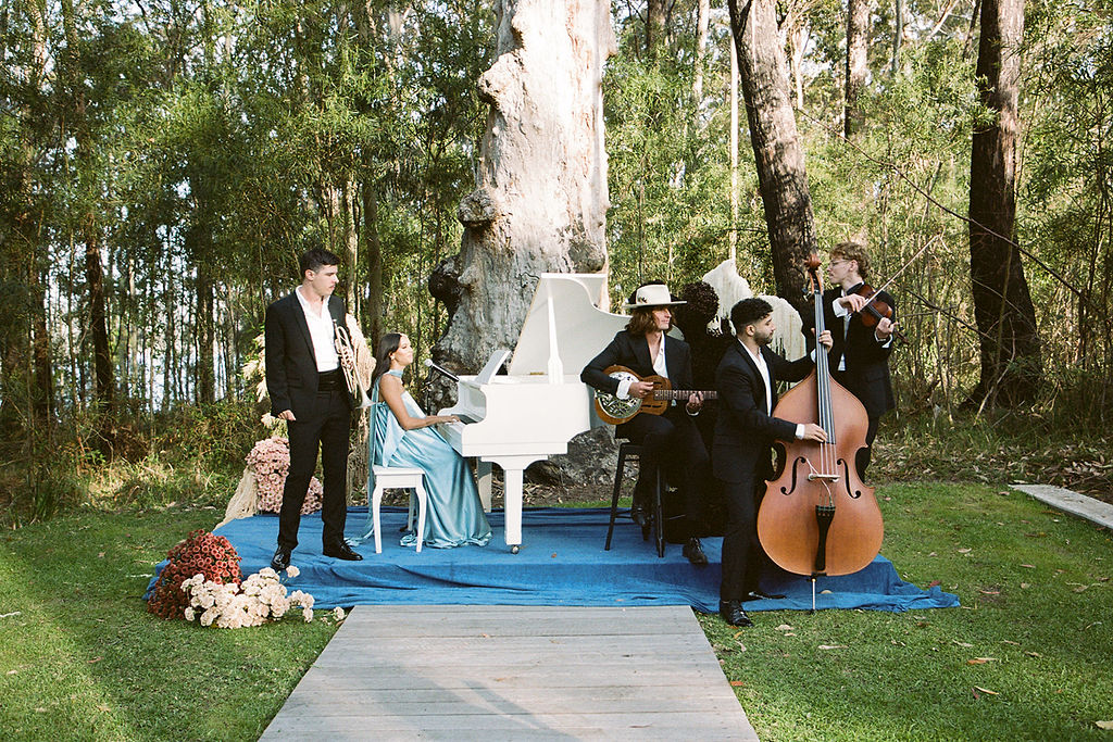 CONTRIBUTING VENDORS Photography Kyle Ingram Styling Ruffles and Bells Venue The Jackson Ranch Portrait back drop Offset Portraits Musicians Stellaire Content Creator Aniella Batten Furniture Harry the Hirer Hire Items Eto Studio Florist Mrs Gibbons Flowers Hair & Makeup Bridal Glow Co Wedding dresses & Veils Aston Bridal Suits Oscar Hunt Tailors Jewellery Kate & Kole Getting Ready Outfits Shona Joy Swimmers Alt Swim Stationery Rebel Reflect Printing Smada Design & Print Linen Simply Seated Models @naomiduroselle @shanemccarthy_
