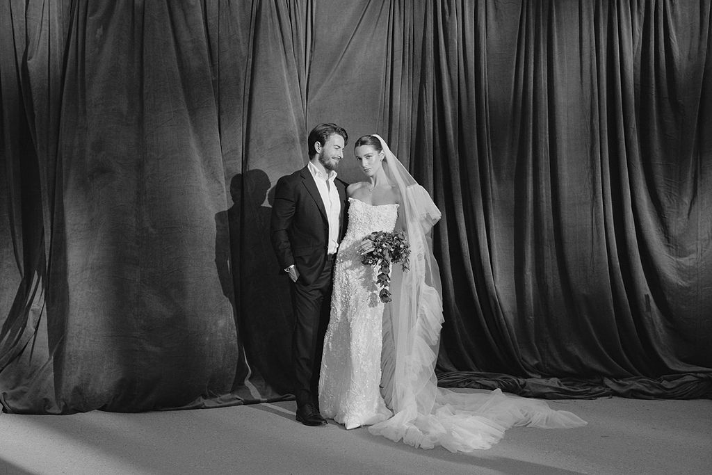 “For this editorial, we embraced blue as the narrative thread, translating the season’s defining hue into every layer of the story,” shares stylist Eliska from Ruffles and Bells. “Chalky blues, muted textures, and warm brown tones were carefully chosen in fabrics, draping, and silhouettes to evoke both sophistication and romance, while silver accents added a subtle modern shine.”