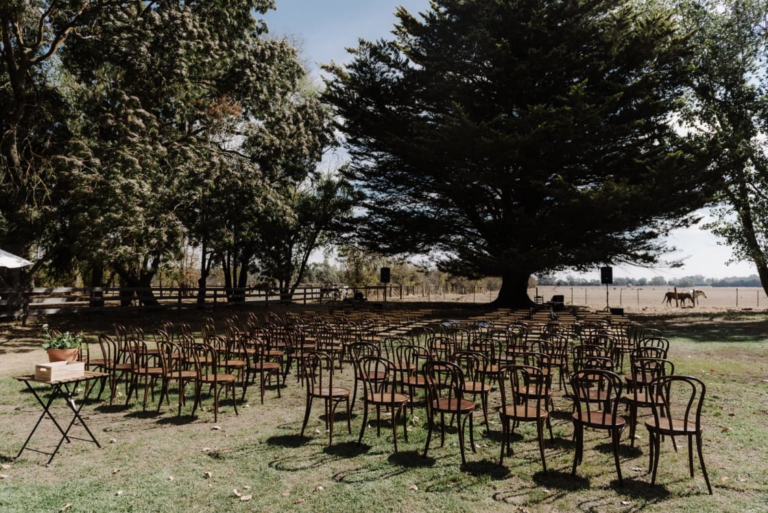 Straight out of a storybook, Chatsworth House has an undeniable charm and enchanting elegance. From Melbourne, head west for about three hours and you’ll find it nestled amidst rolling hills and majestic red gum trees. They have accommodation on-site and a suite of celebration spaces for you to choose from, including the historic stable’s lawn, newly refurbished long room, and rose gardens. This private regenerative grazing property opens its gates for a select number of (super lucky) celebrations each year. So get in quick sticks!