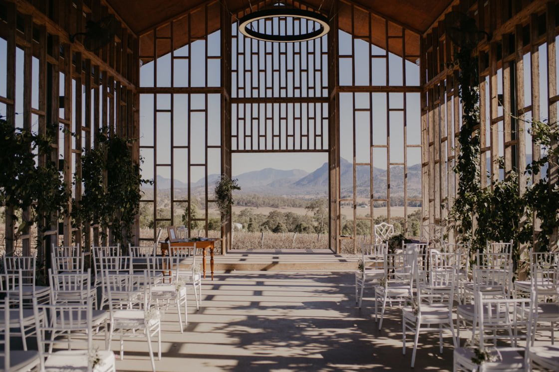 Having opened its doors in July 2024, Maroon Hill might be new on the block, but you best believe this Maroon, Queensland venue is already turning heads (including ours). With uninterrupted 360-degree views of the countryside, including the magnificent Mount Maroon as a key focal point, how could this destination not capture your attention? In addition to postcard-worthy views, Maroon Hill couples enjoy access to the property’s welcoming indoor reception space, modern accommodation, festoon-lit cocktail area and fire pit. Online, owners Sarah and Rhys share that their intention with Maroon Hill was to create a space “that invites guests into a homely environment, all while basking in the breathtaking views that make our estate truly special.” Well, let’s just say mission accomplished.