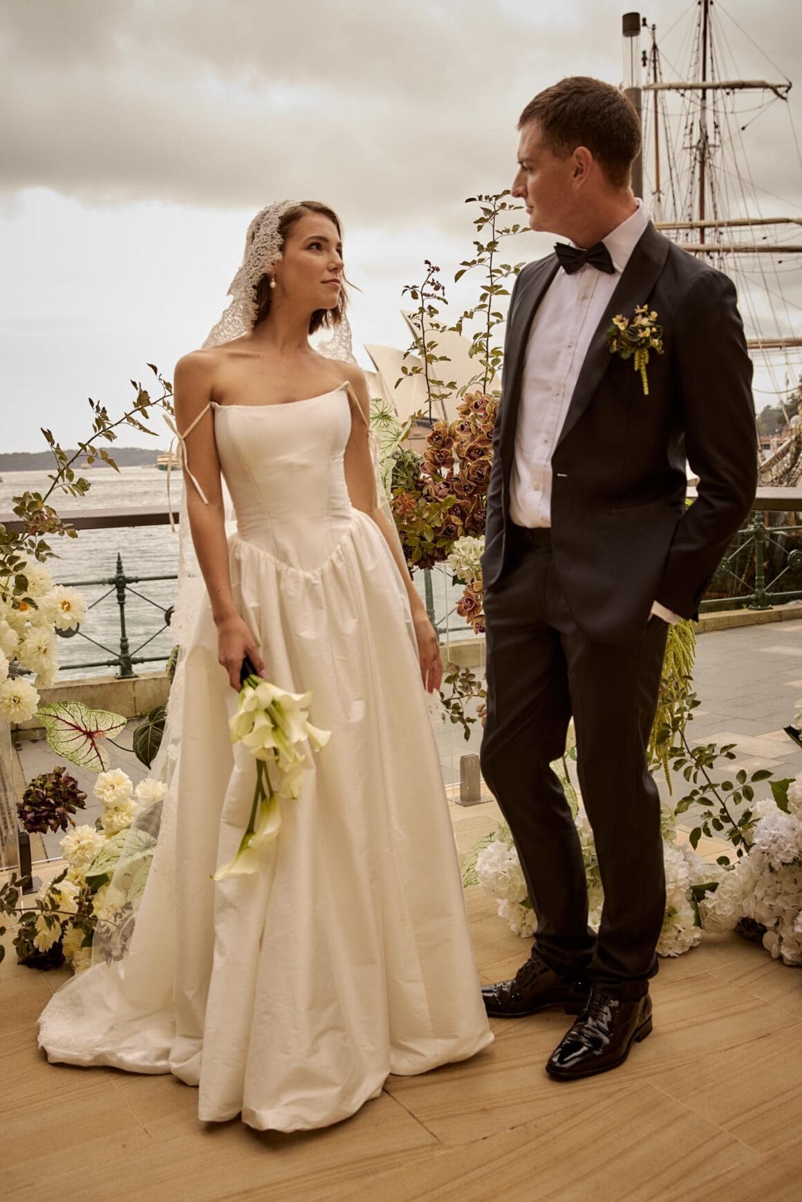 It was a wildly beautiful day working alongside some of the best in the biz, and the result is pure magic. From modern curved tablescapes to fresh and lush florals, and that quintessential Sydney view from The Bridal Suite and beyond, this Park Hyatt setting is off-the-charts good! Of course no wedding shoot is complete without a few outfit changes, which came courtesy of our friends at Karen Willis Holmes, Lola Varma, Saving Grace and M.J. Bale with seriously-cool veils and accessories from Dove Grey Bridal and shoes from Bared Footwear.