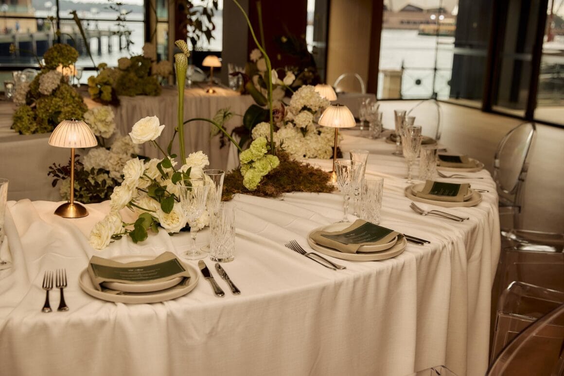Celebrations which are equal parts polished and personal is what Rhianna Smith Events does best. With her signature blend of calm confidence and razor-sharp style, Rhianna styled every damn detail of this set-up with gorgeous intention – the modern and lush curved tablescape was a total vibe, showcasing The Guest House in its most vibrant light.